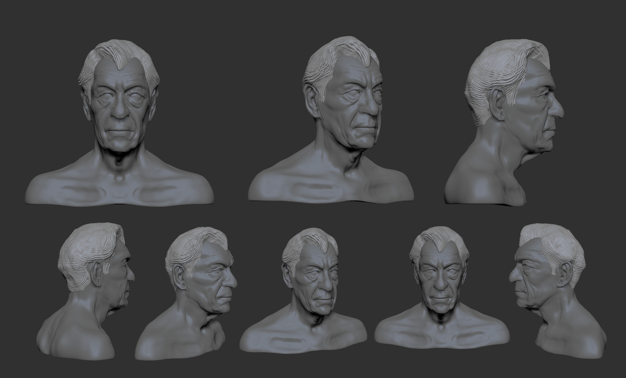 This is my current WIP for my Sir Ian McKellen likeness sculpt. Still have a while to go to get it right. Finding consistent age reference has been the main challenge so far.