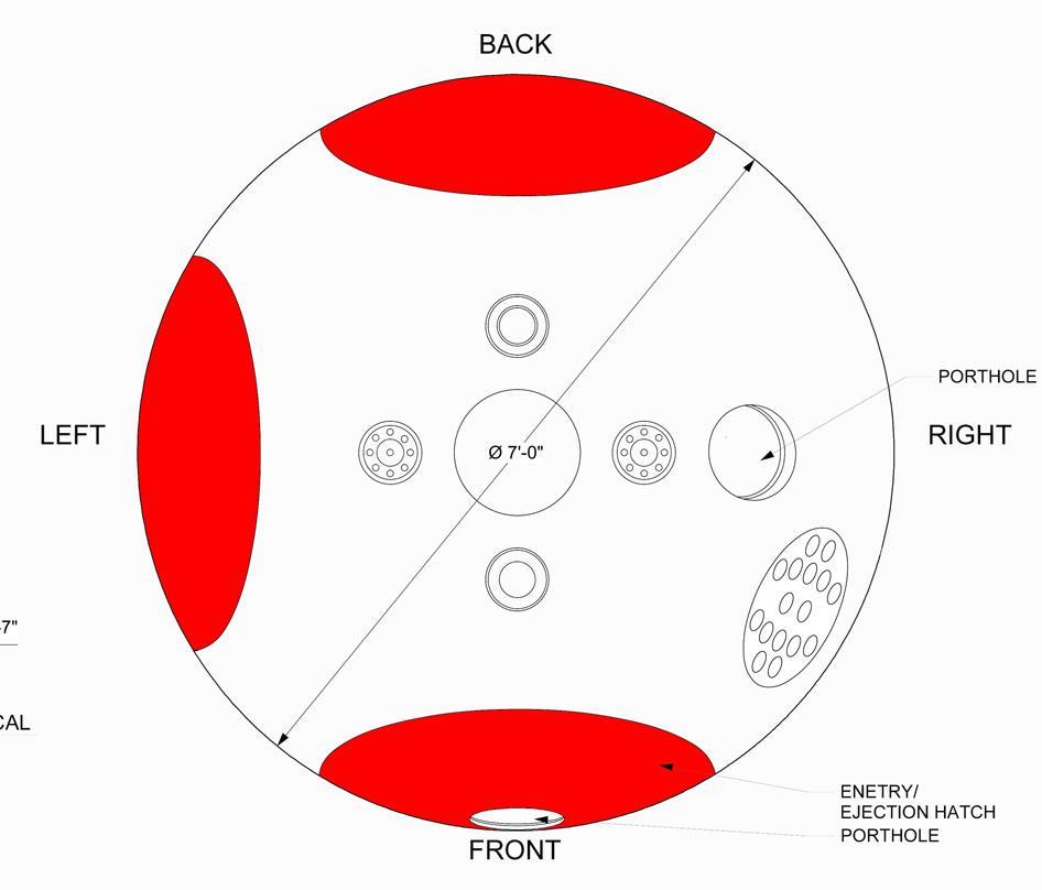 the red areas in the blueprint need to be sliced away on the 3D sphere model so there’s a flat plane left afterwards or even better it looks like some sort of porthole.