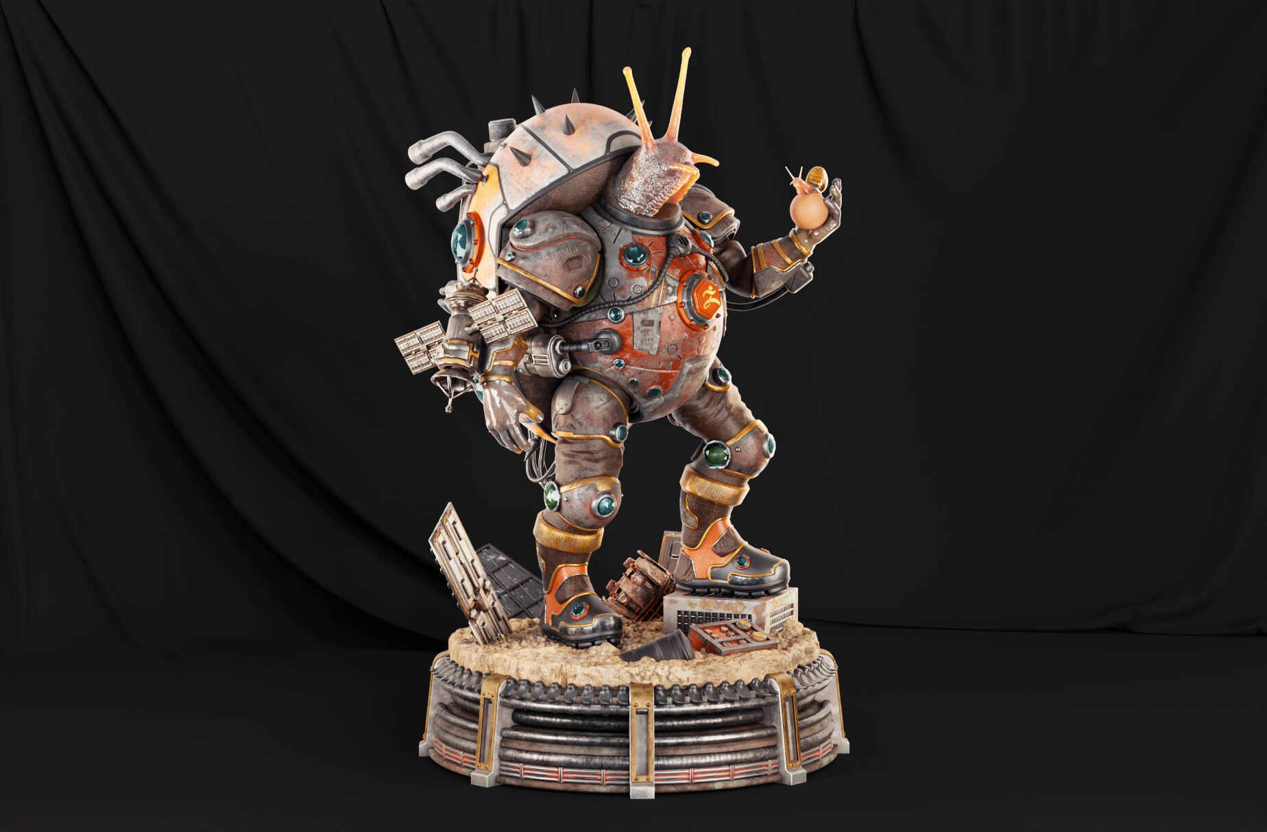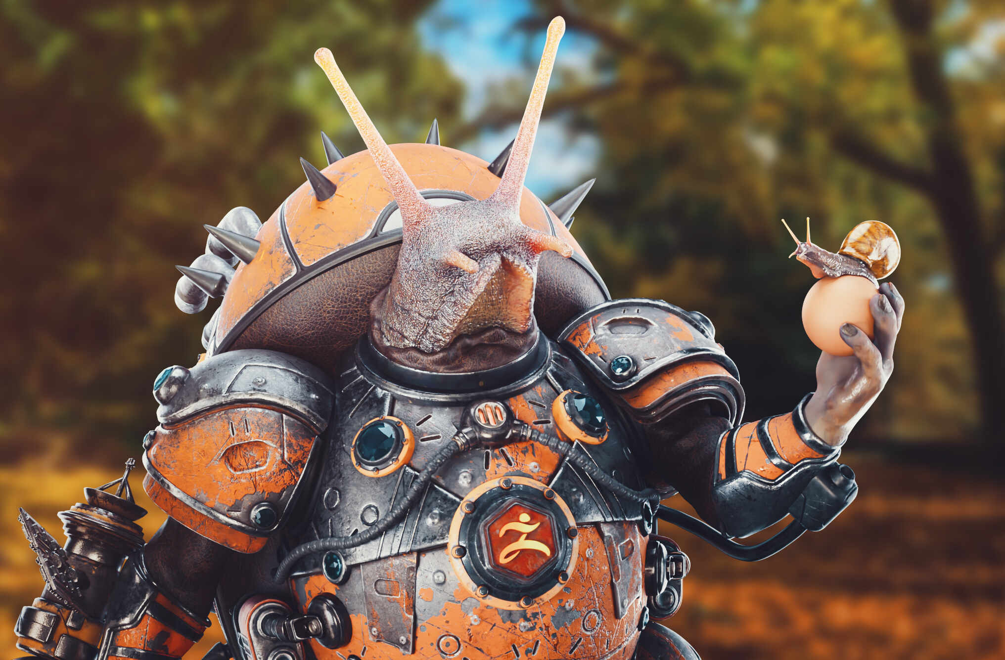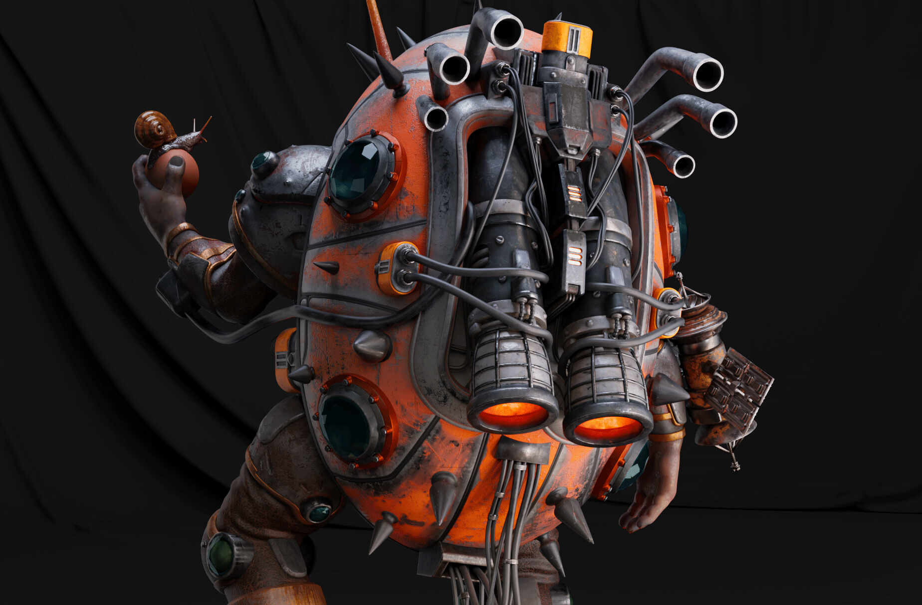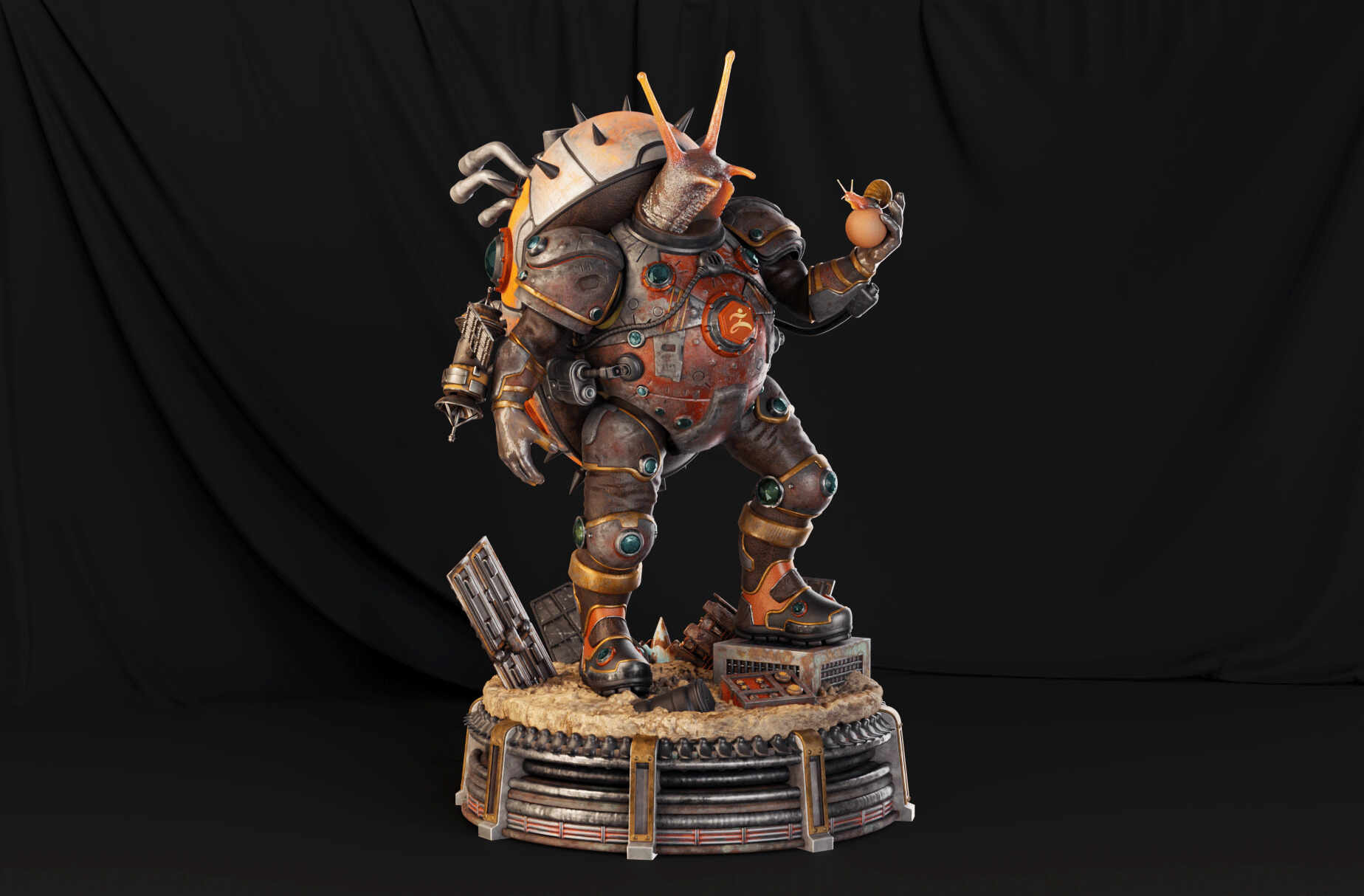 I’m very happy to show you this new artwork. I was invited to be part of the ZBrush beta tester team 2026. Meet my giant rusty snail mech warrior and his tiny golden buddy, he’s proudly showing off like “look what I found!”