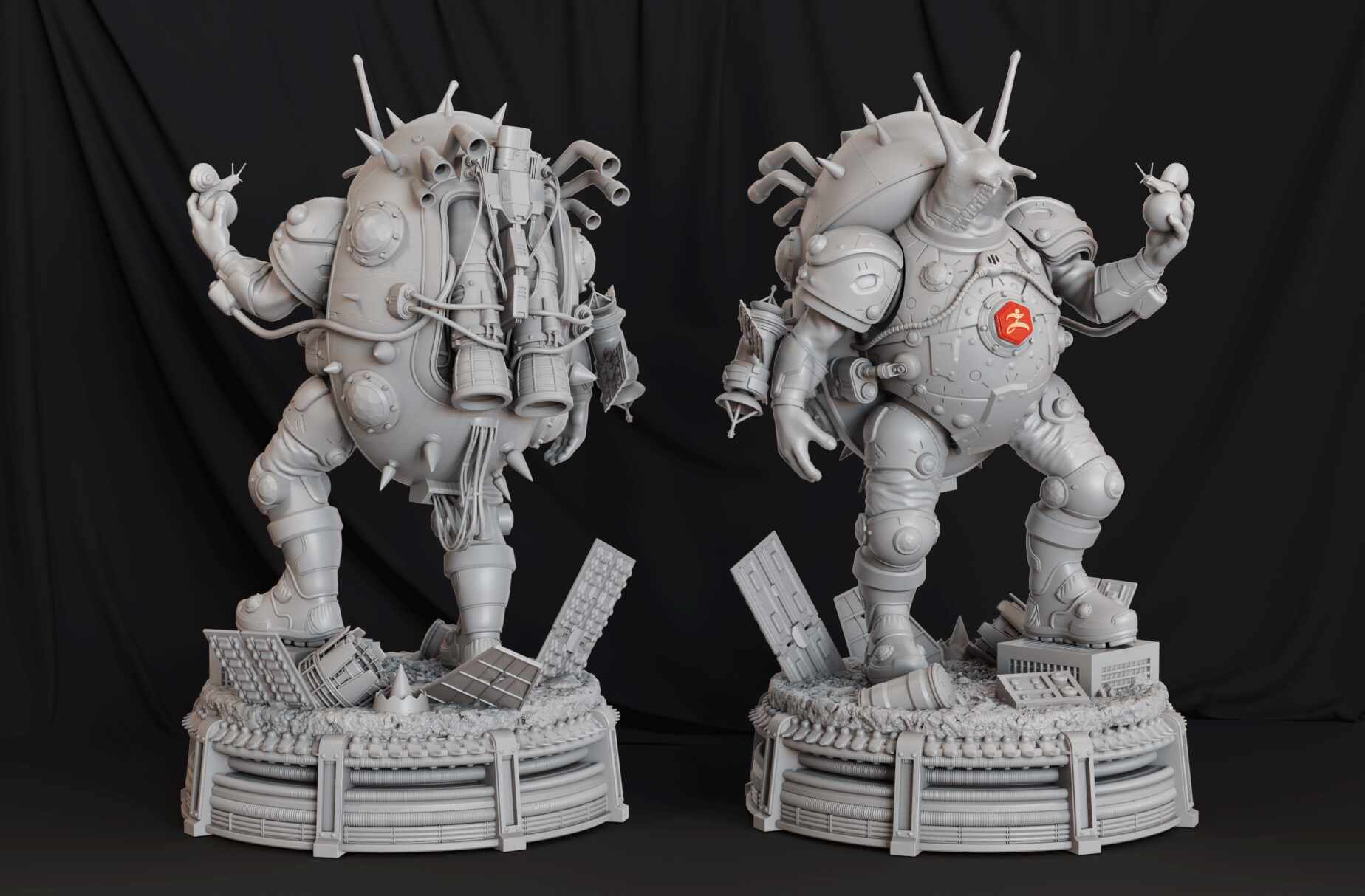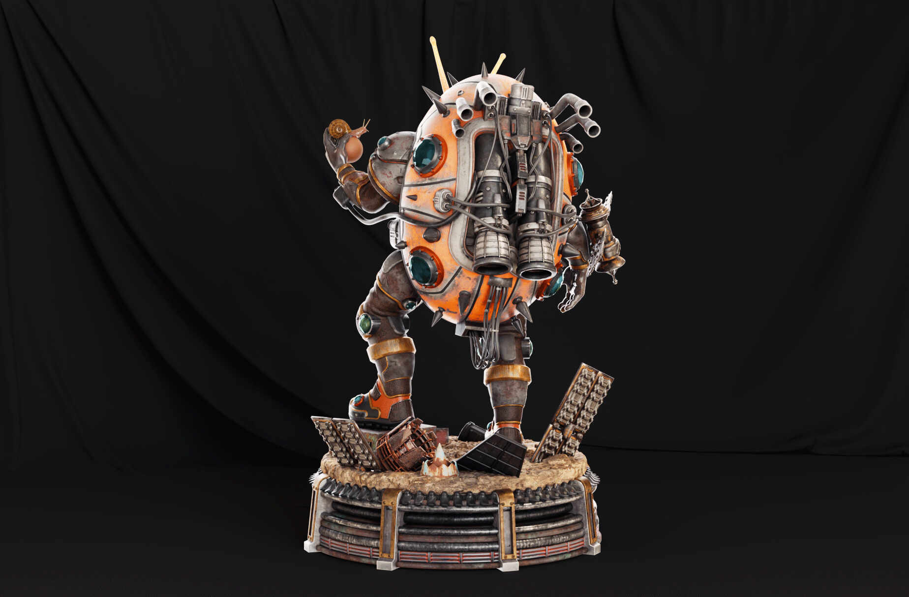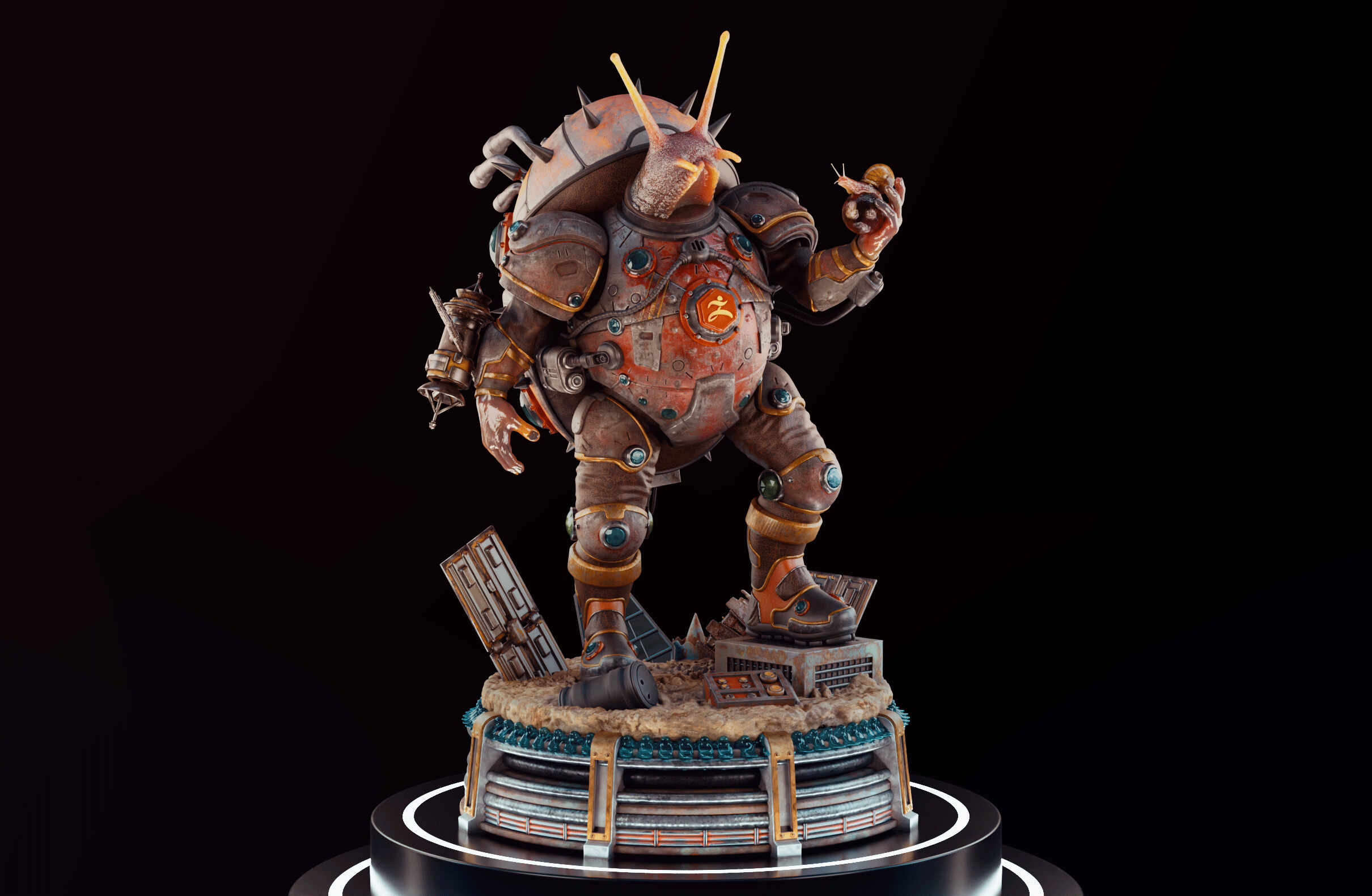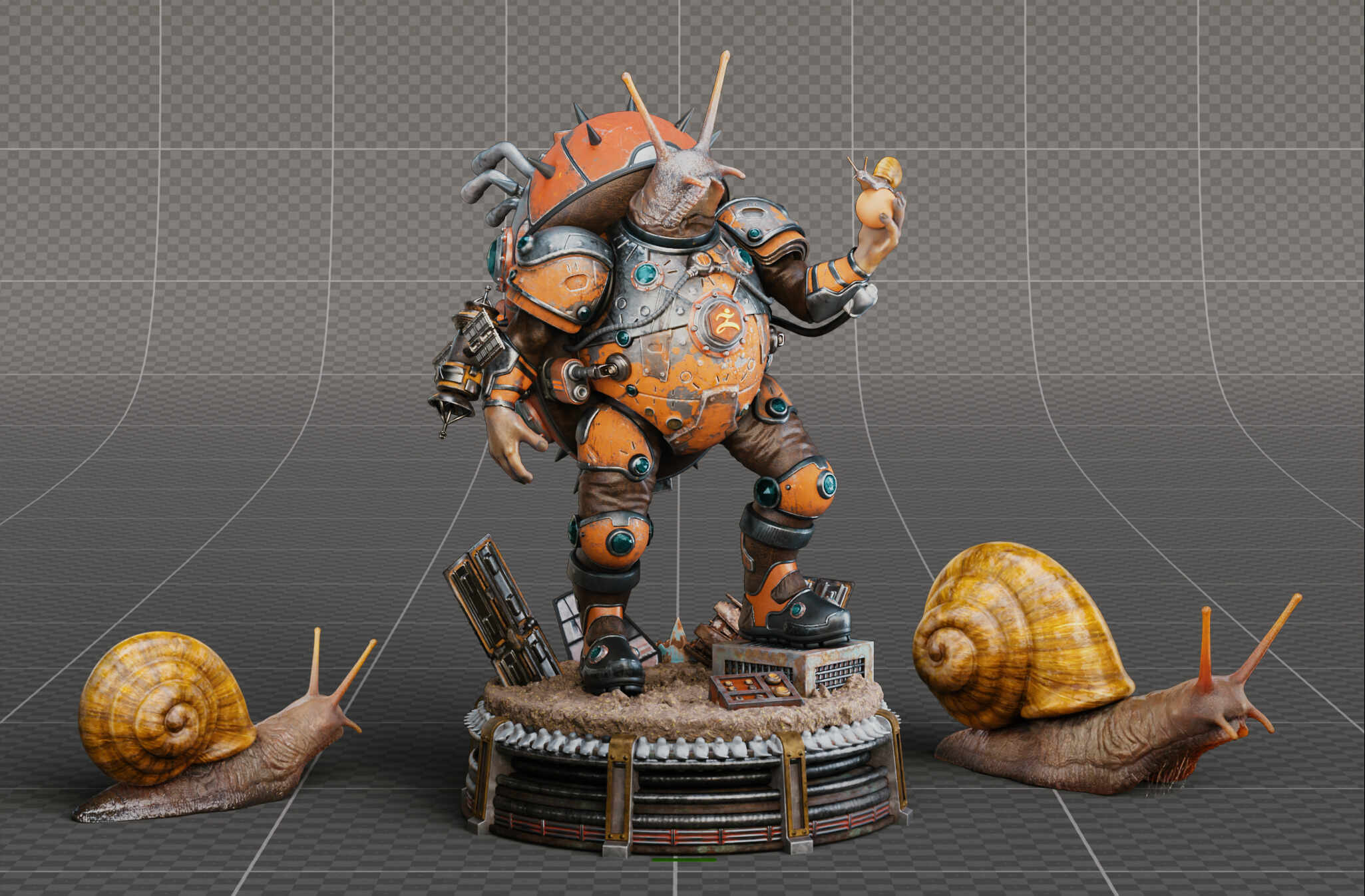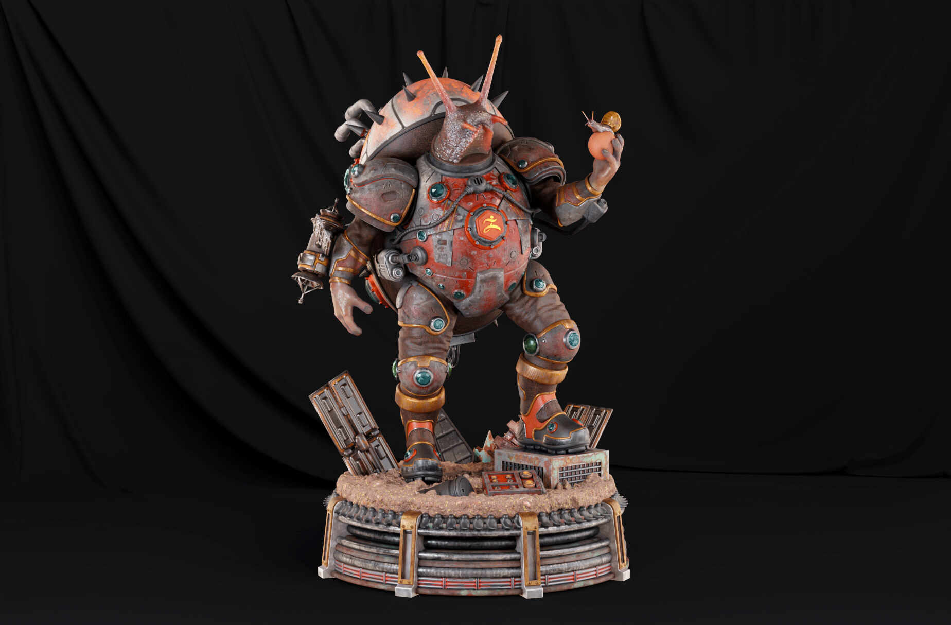 I’m very happy to show you this new artwork. I was invited to be part of the ZBrush beta tester team 2026. Meet my giant rusty snail mech warrior and his tiny golden buddy, he’s proudly showing off like “look what I found!”