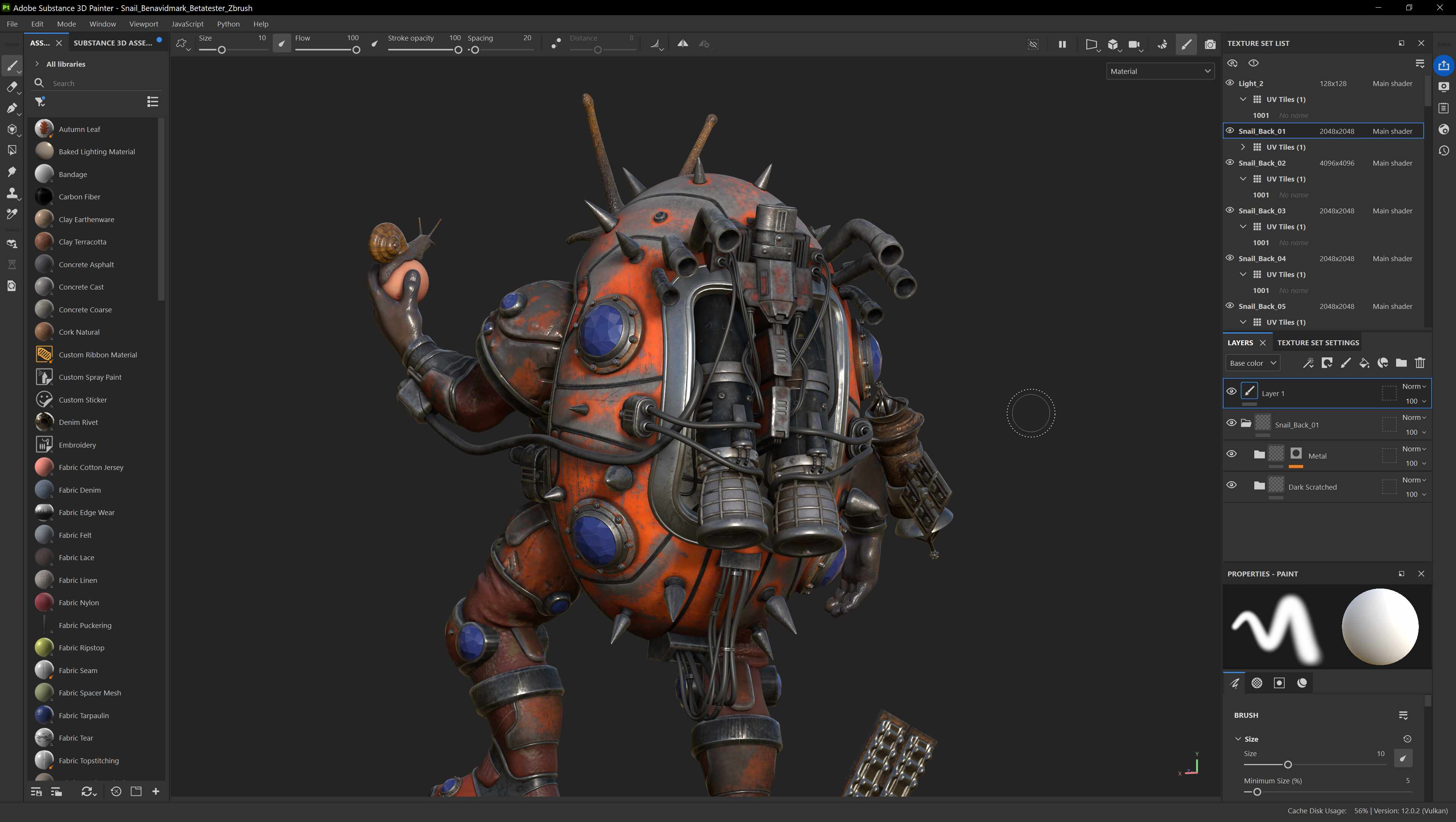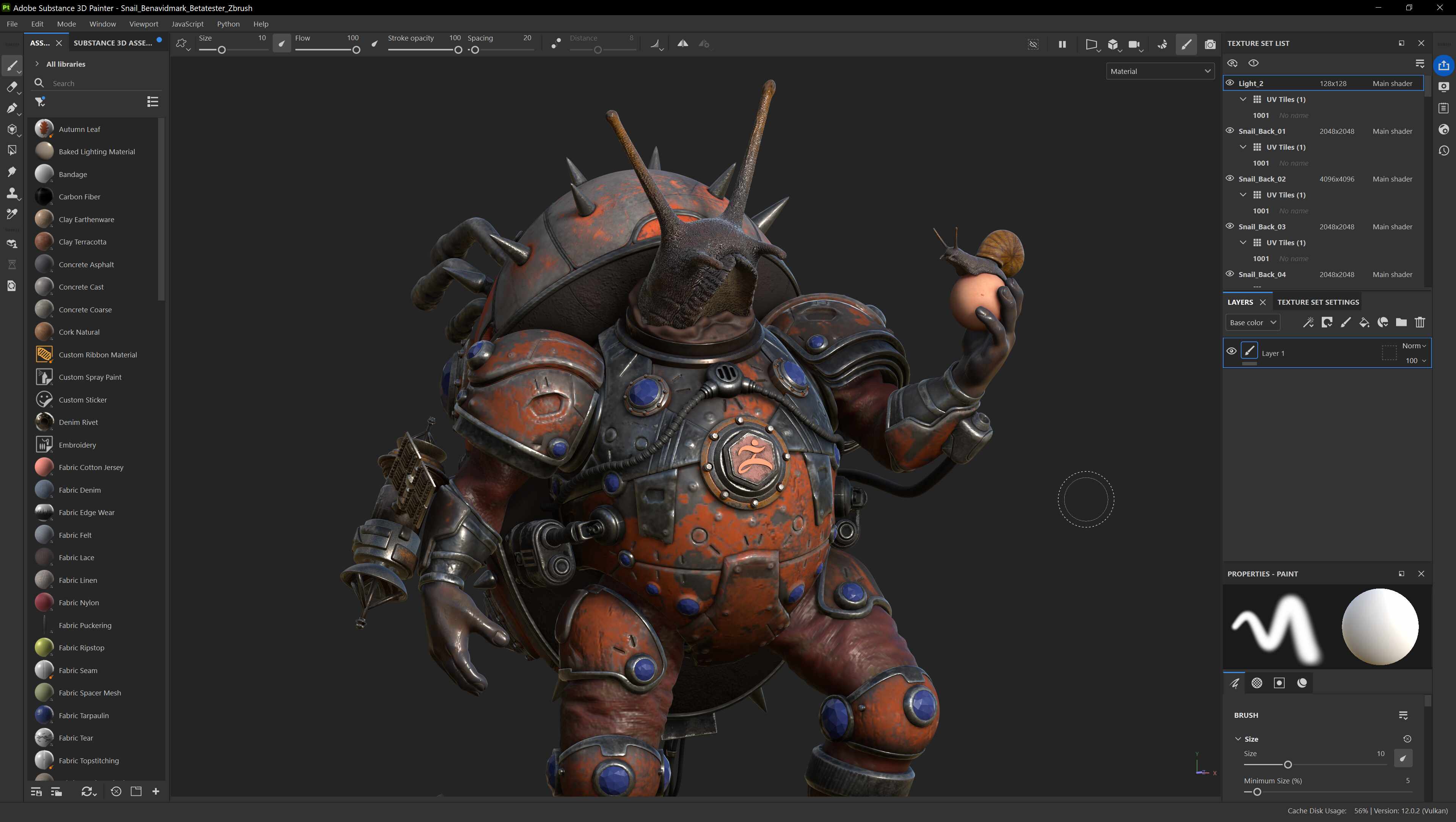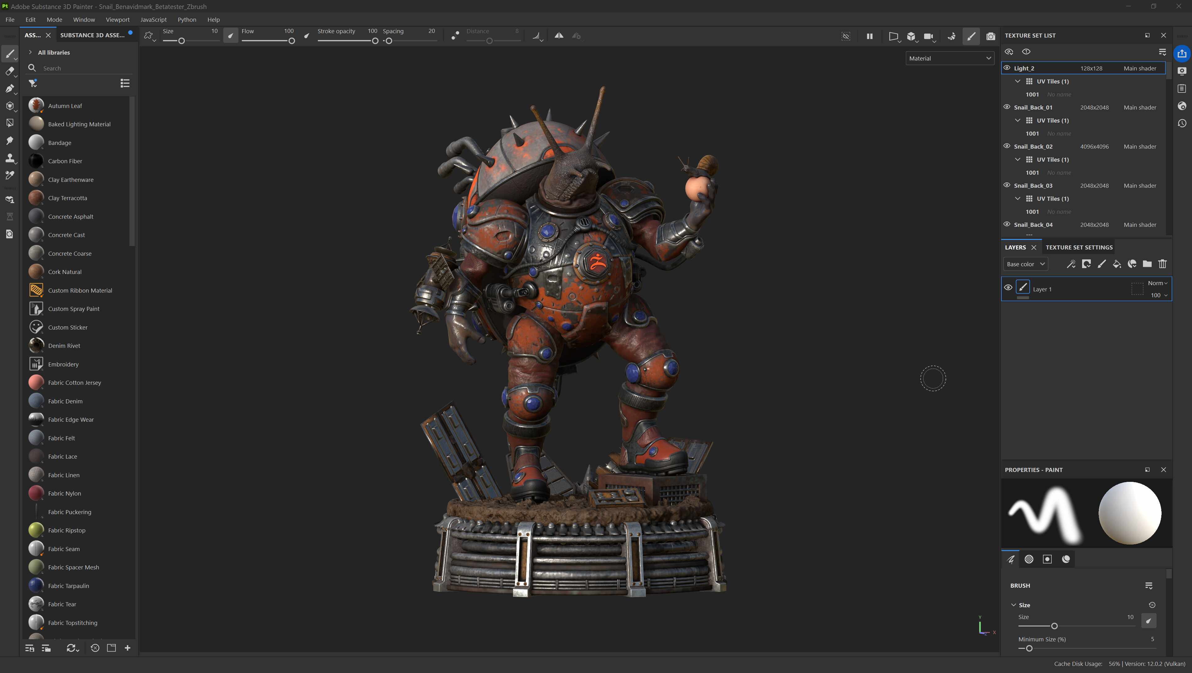 The artwork was fully 100% sculpted in ZBrush to test the new bridge for Substance Painter.