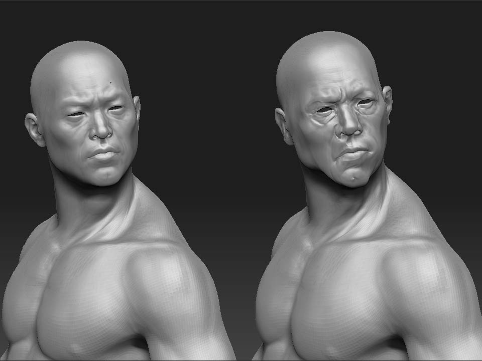If I take the neutral pose and twist the neck, torso, hip and so… the faces go crazy. So much fun! …Or not.