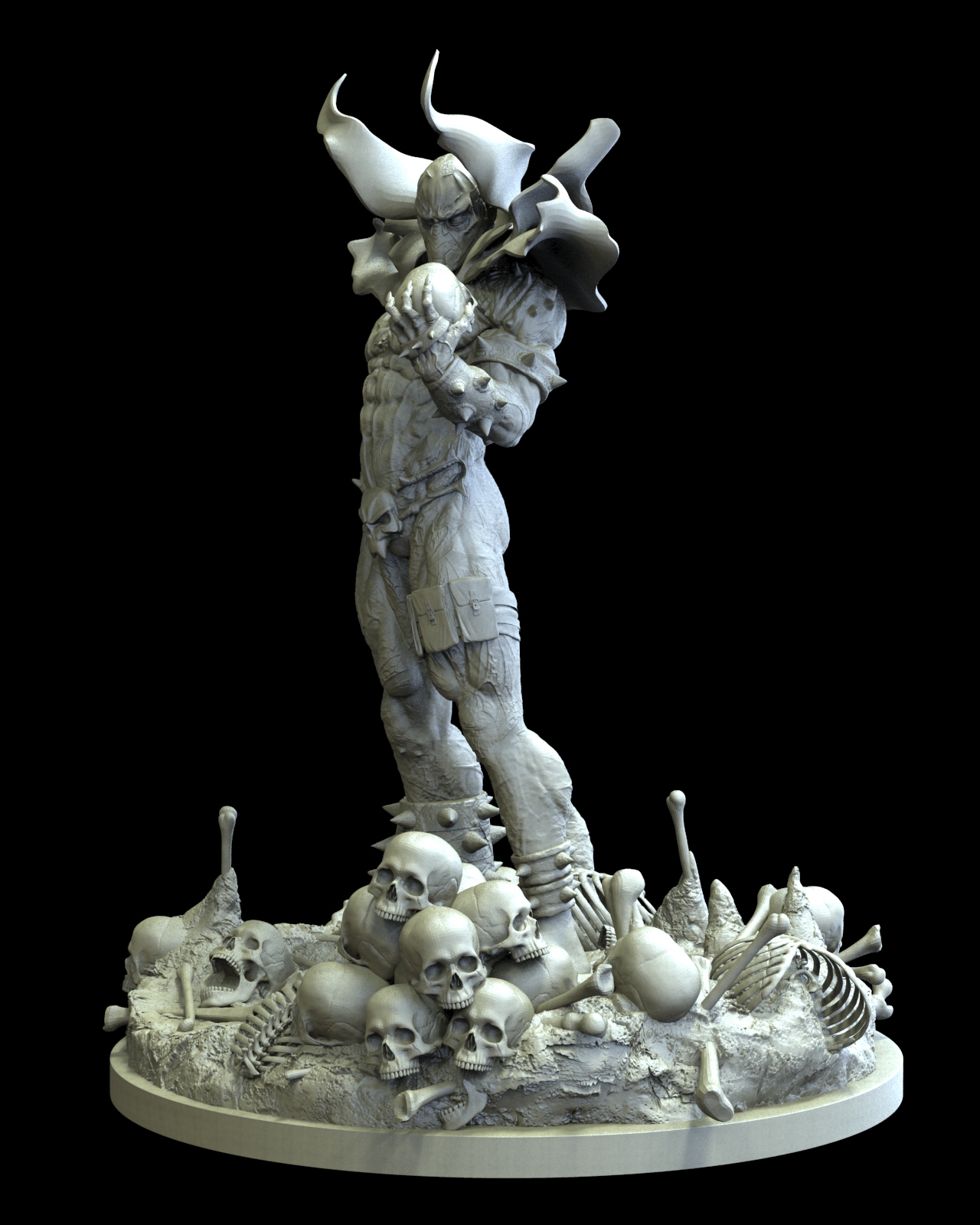 I decided to take my old Spawn model and finish it! I wanted to get him more to the classic spawn with his big foot and armor. some progress renders: