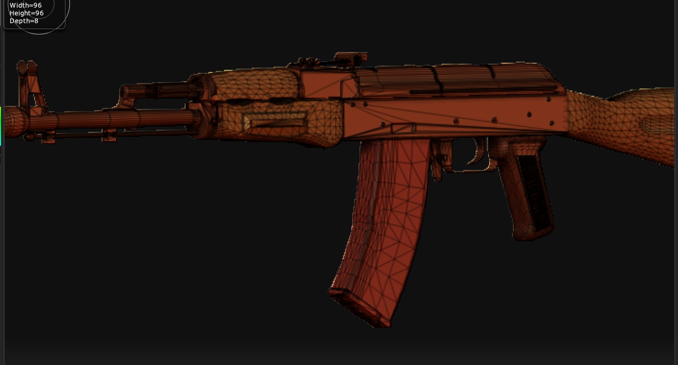 and i first switch tool to the brush tool and then processed to import an obj file of a gun ( triangulated)