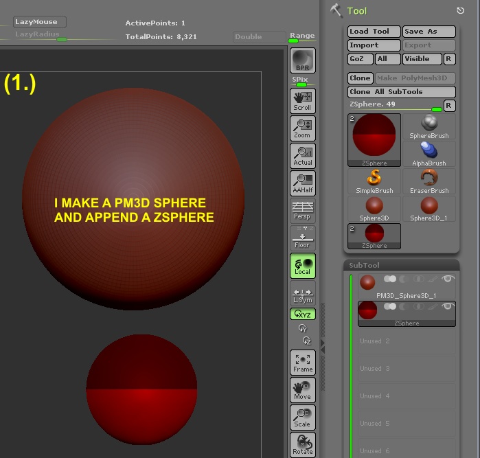 Practice these things for now and let me know how you get along. Remember, never click ‘Make PolyMesh3D’ button when you have more than 1 subtool in the Subtool palette if you don’t want the rest of the subtools disappearaing