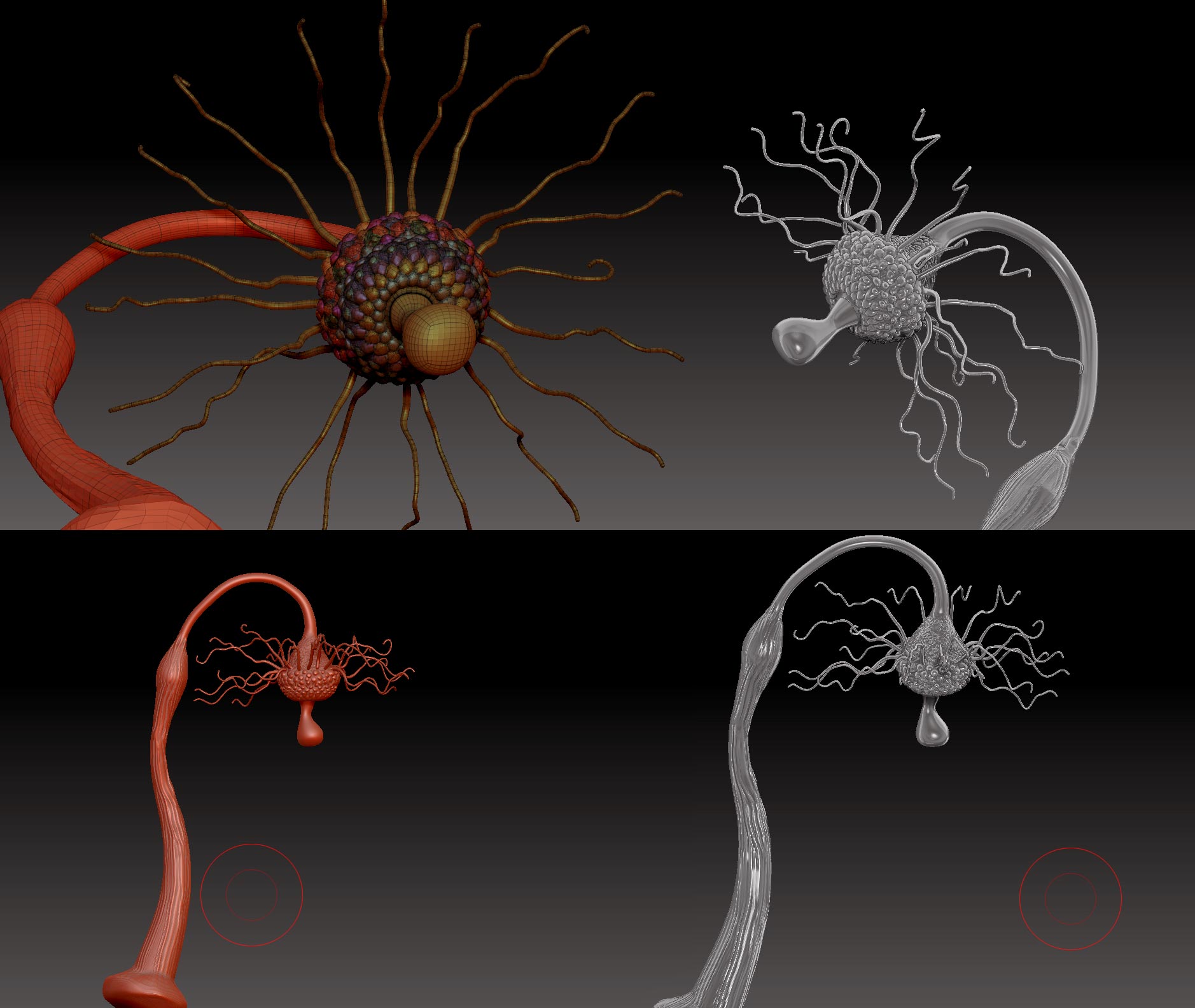 Im expected to design some surrealistic flowers for a class project. But Im stuck at some points while using Zbrush:( I would be glad if someone lead me to the right way and share some experiences.