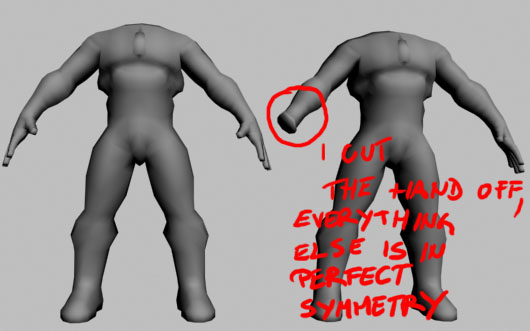 I made the low poly mesh in 3Ds max, mirrored it, mapped it and whatnot, then I changed one side of the mesh just a little. Now when I export it to ZB the symmery isn’t working as it should. Here is the example: