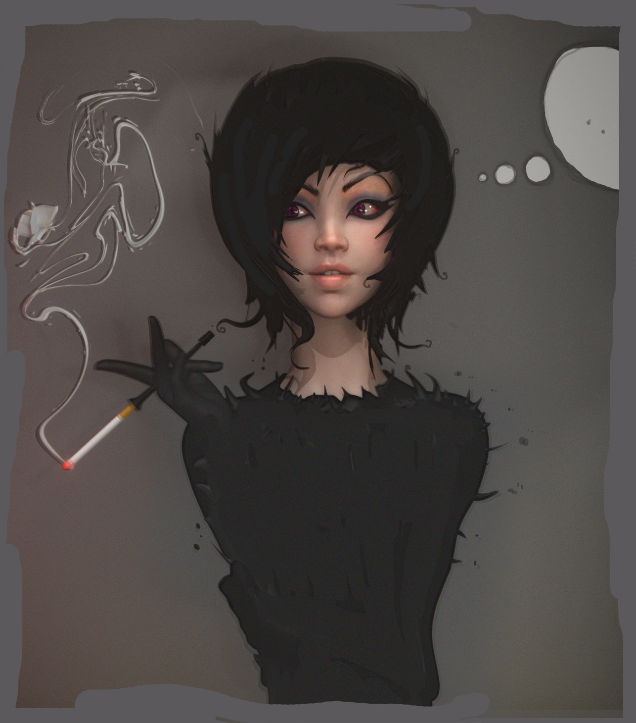 using the same curve brush with which I made the hair combined with the spiral brush in a few seconds I made a convincing coil of smoke. Sometimes I am surprised how smart and powerful zbrush isβ