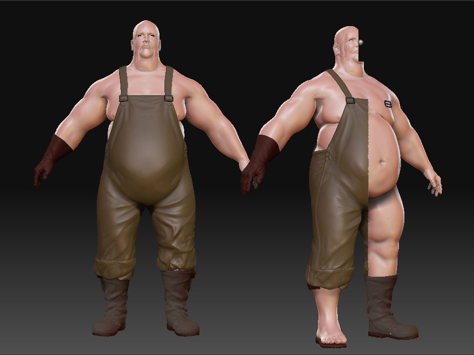 1- Concept Sculpt [sculpt the who character in ZBrush out of rough base meshes ignoring topology and poly counts]