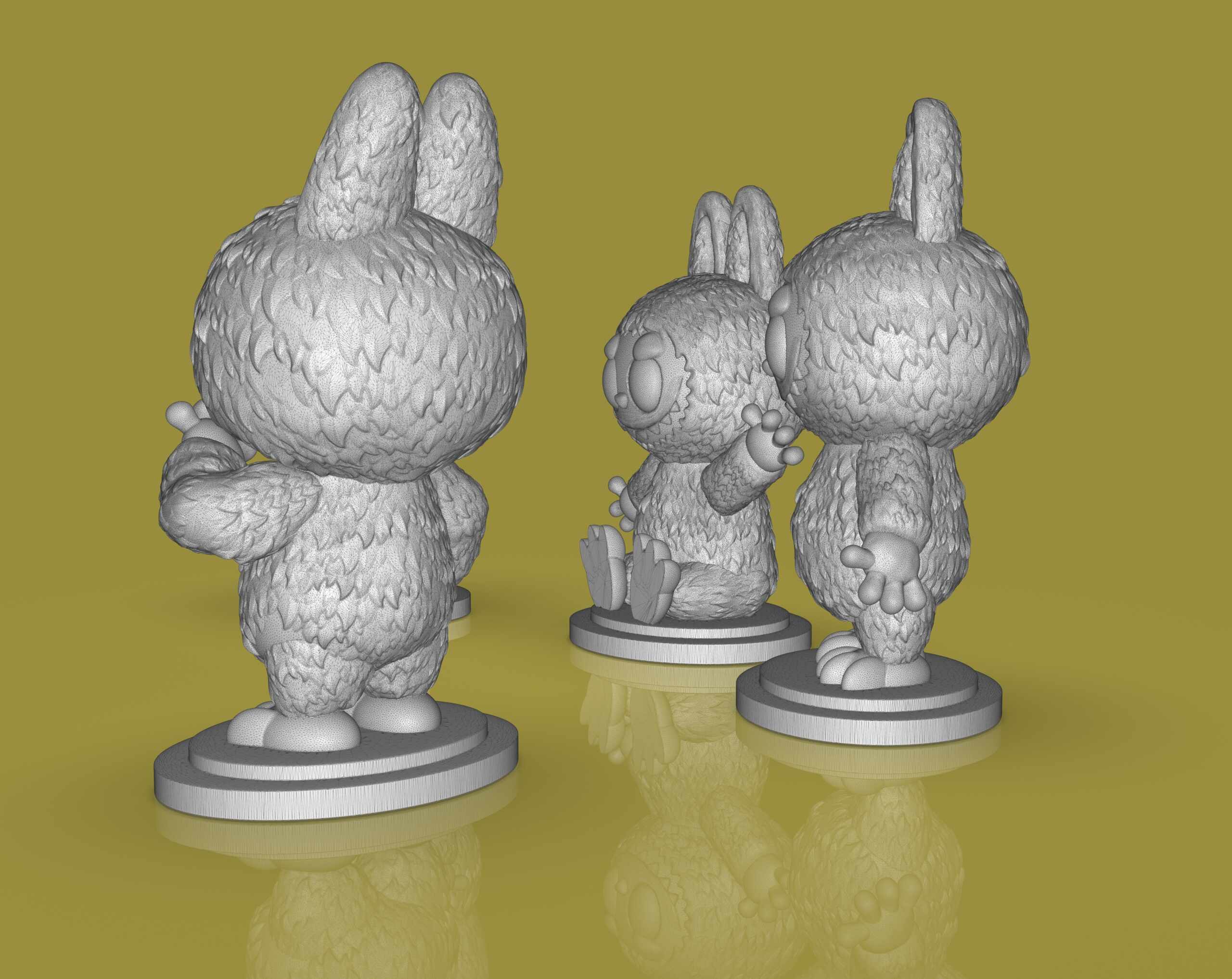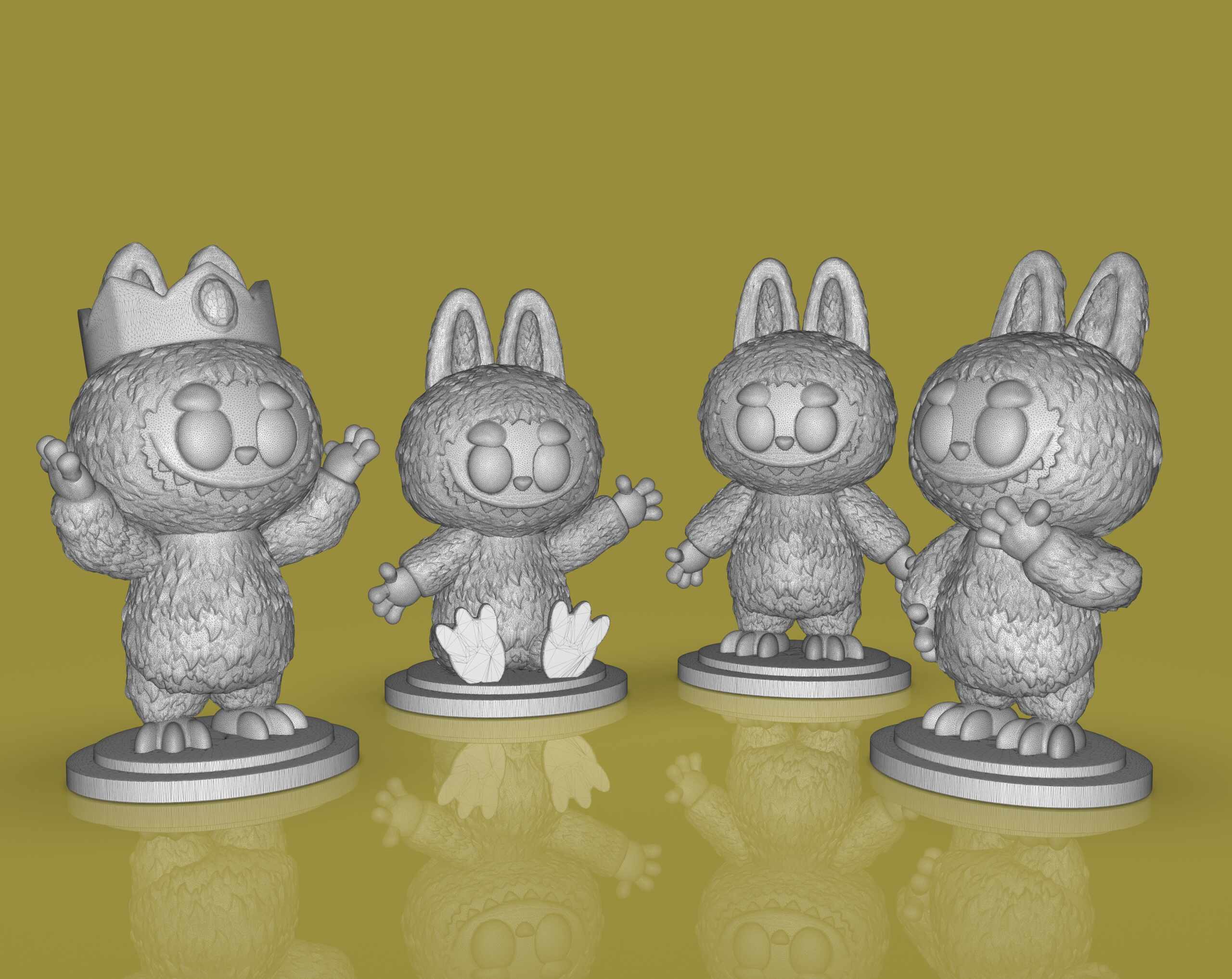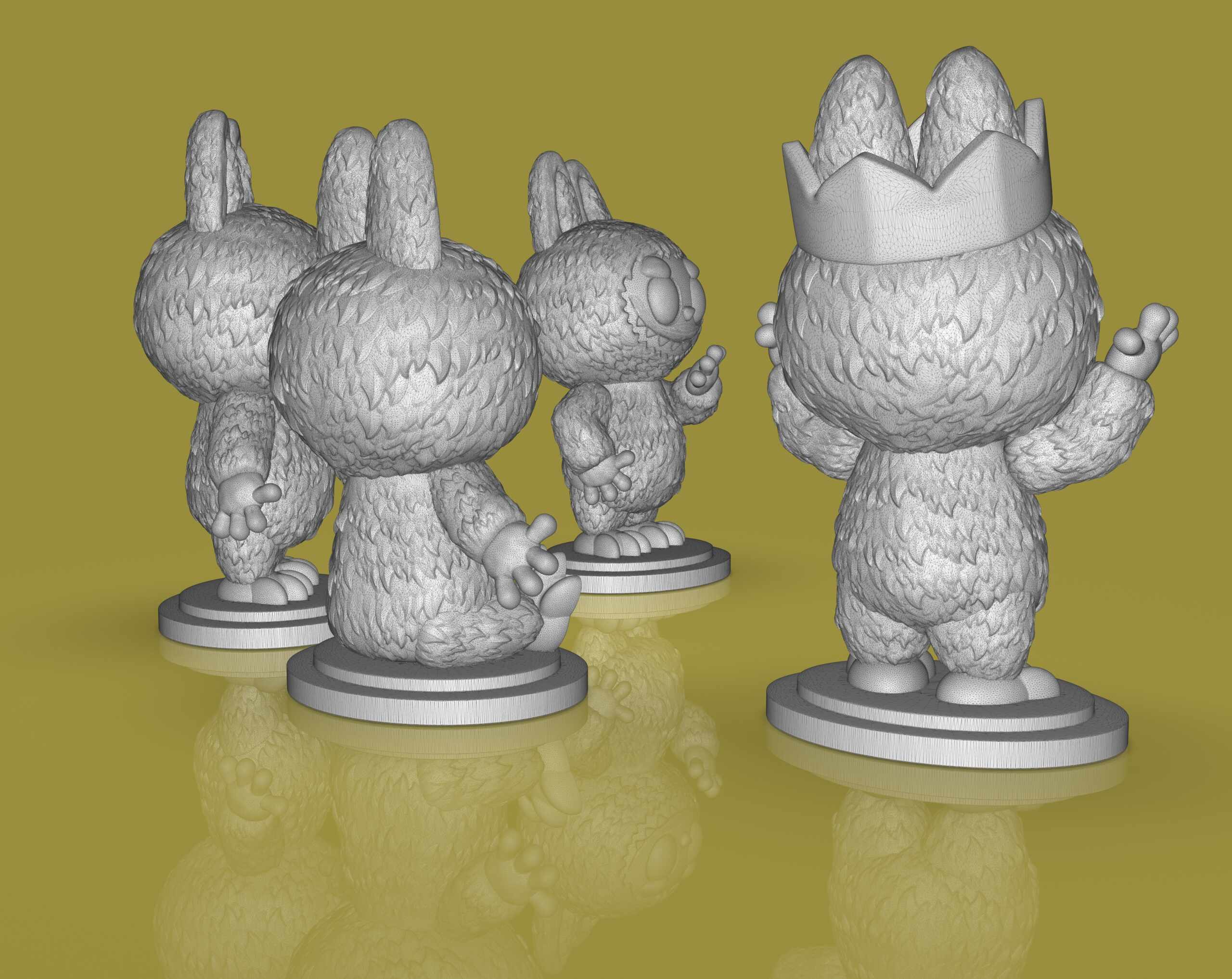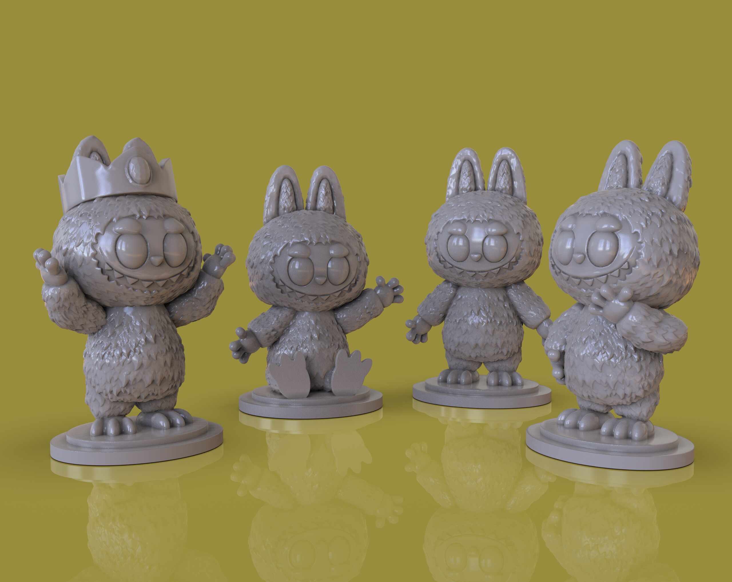 Just for fun, I #3dsculpt Labubus for #3dprint made with #zbrush and #keyshot you can get the files at Cults. https://cults3d.com/en/3d-model/art/4-labubu-sculpts