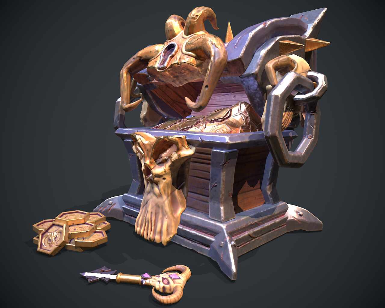 #stylized Demon Chest made as a practice, was really fun to 3D model something different, ready for a Video Game