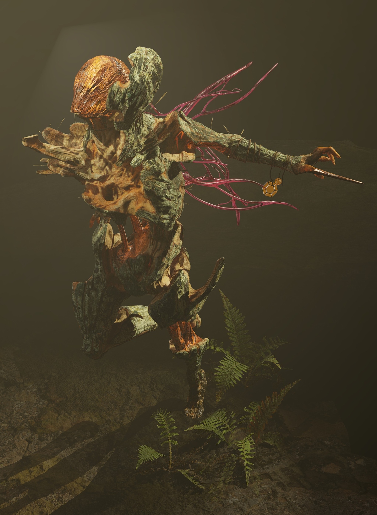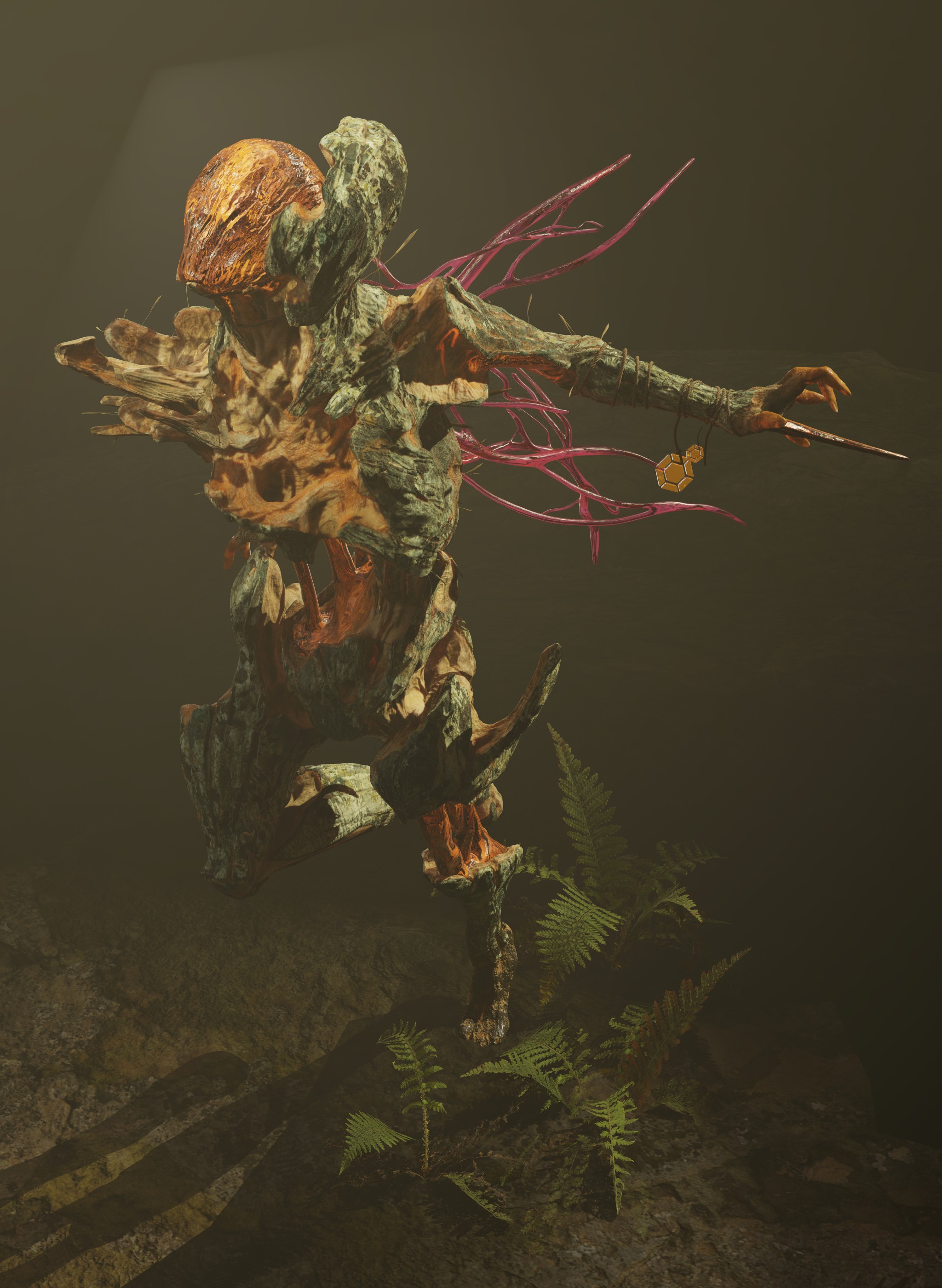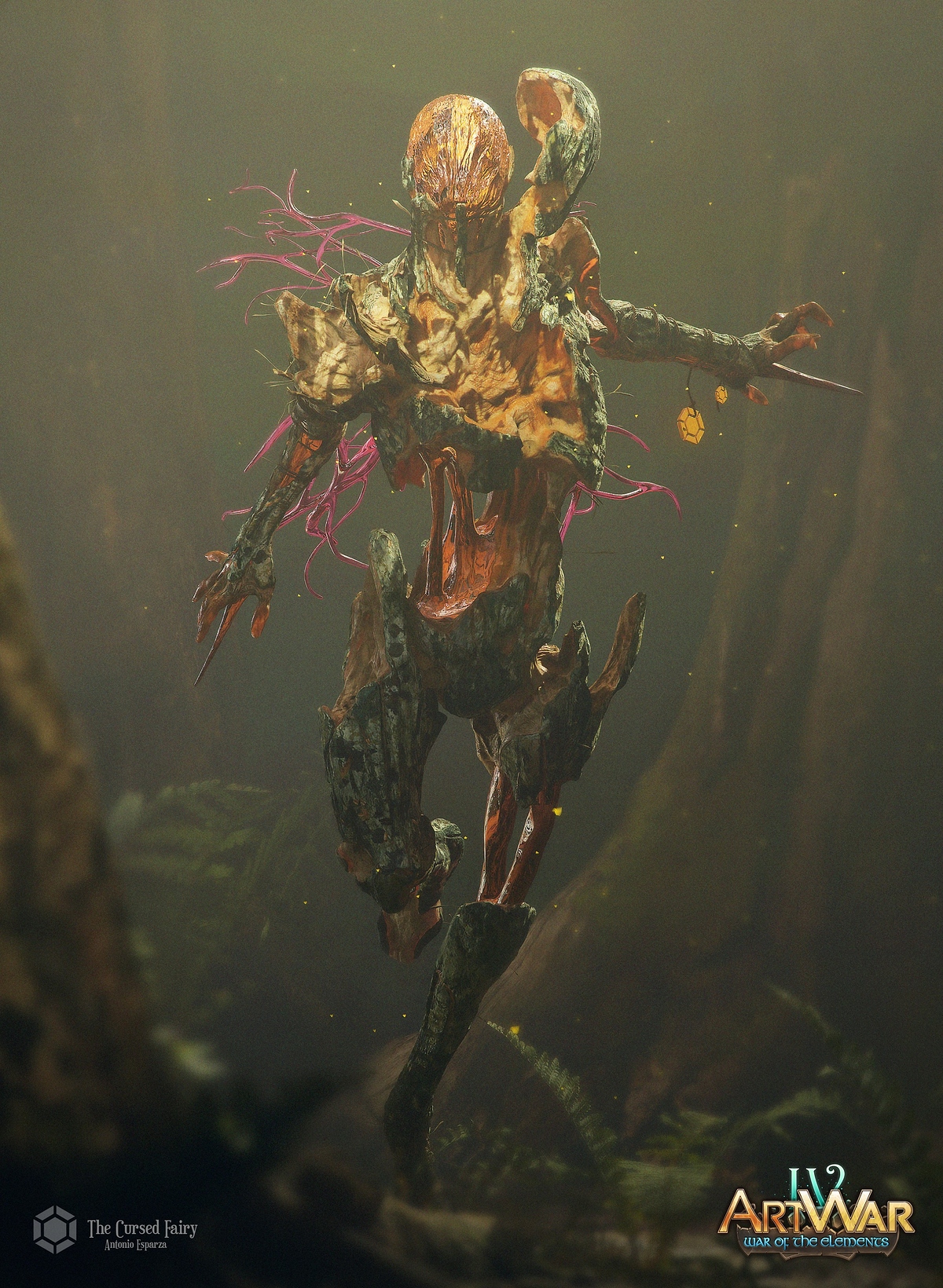 “Legend has it that a mysterious breed of elemental fairies inhabits the ancient forests of the North. Some of them, terrified of their magic nature and their future fragility, condemn their power and their own existence, holding on to their old wooden bodies and so stopping the natural evolution of their own being. They become hostile and dangerous, being disowned from their own clan and hunt younger fairies to steal parts of their bodies and chase the thoughtless who dare cross their territory.”