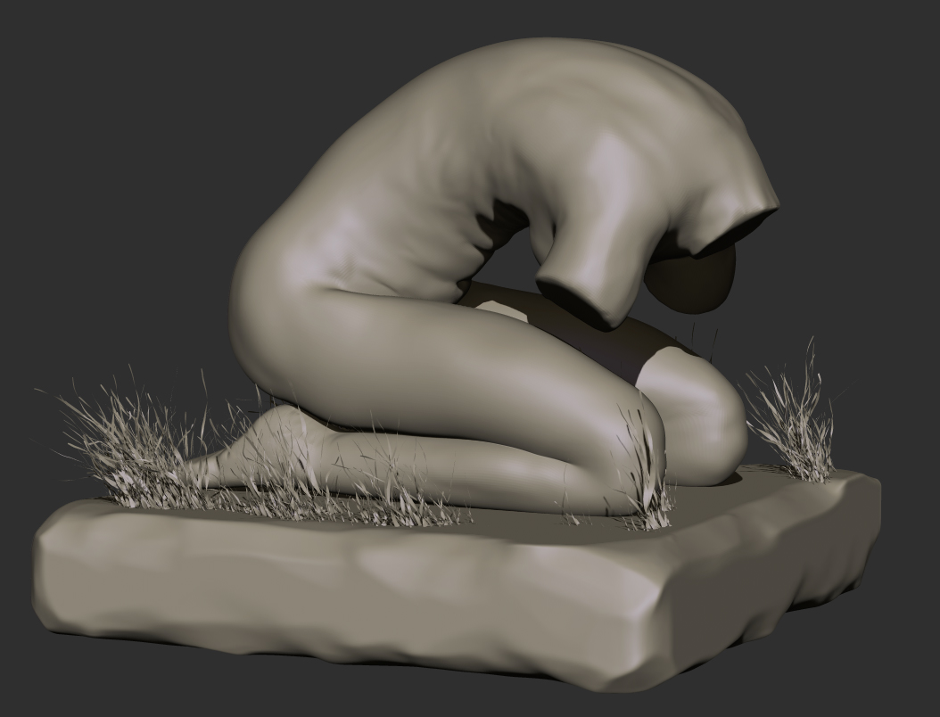 Here’s the raw Zbrush render. Zspheres to Dynamesh. Grass if Fibermesh
