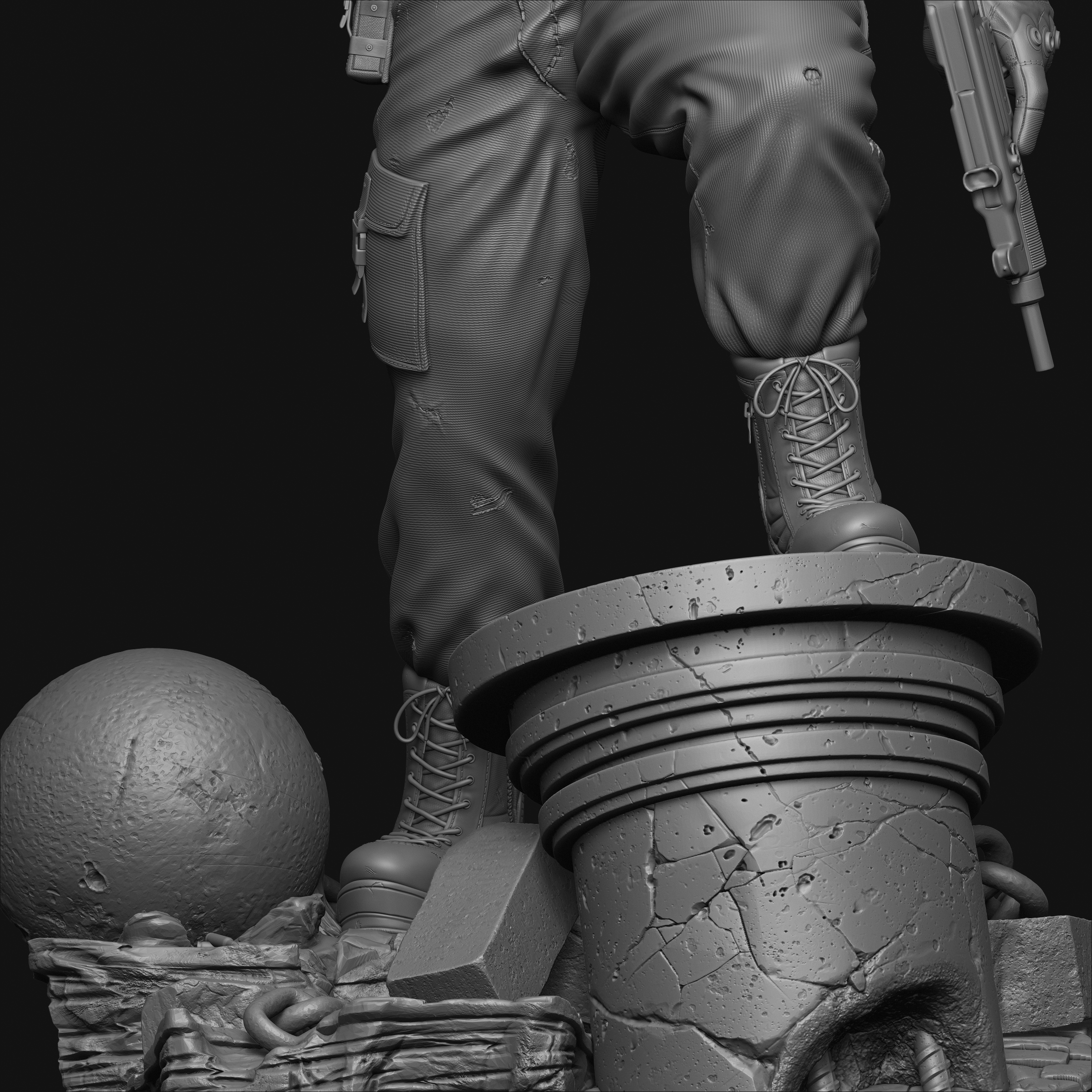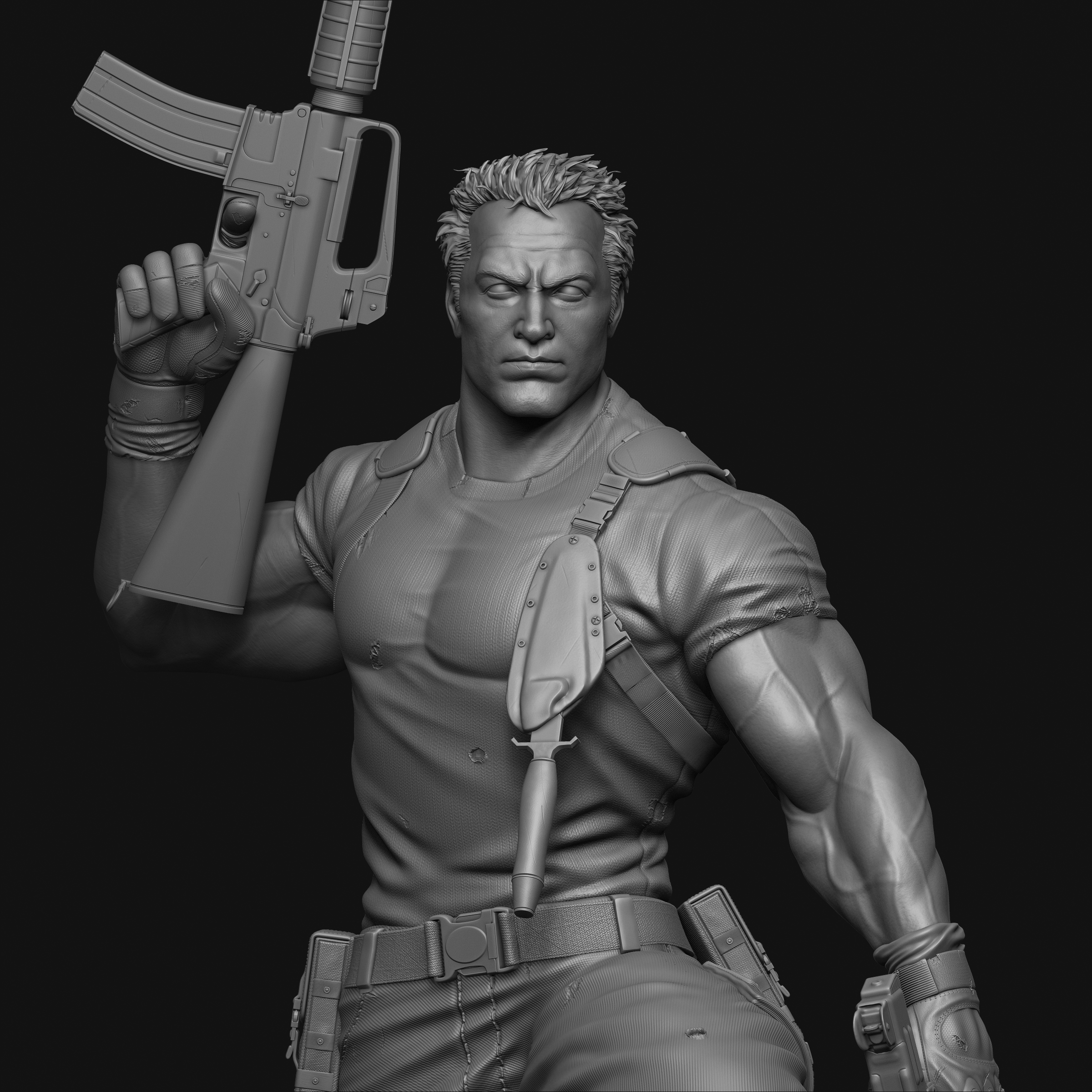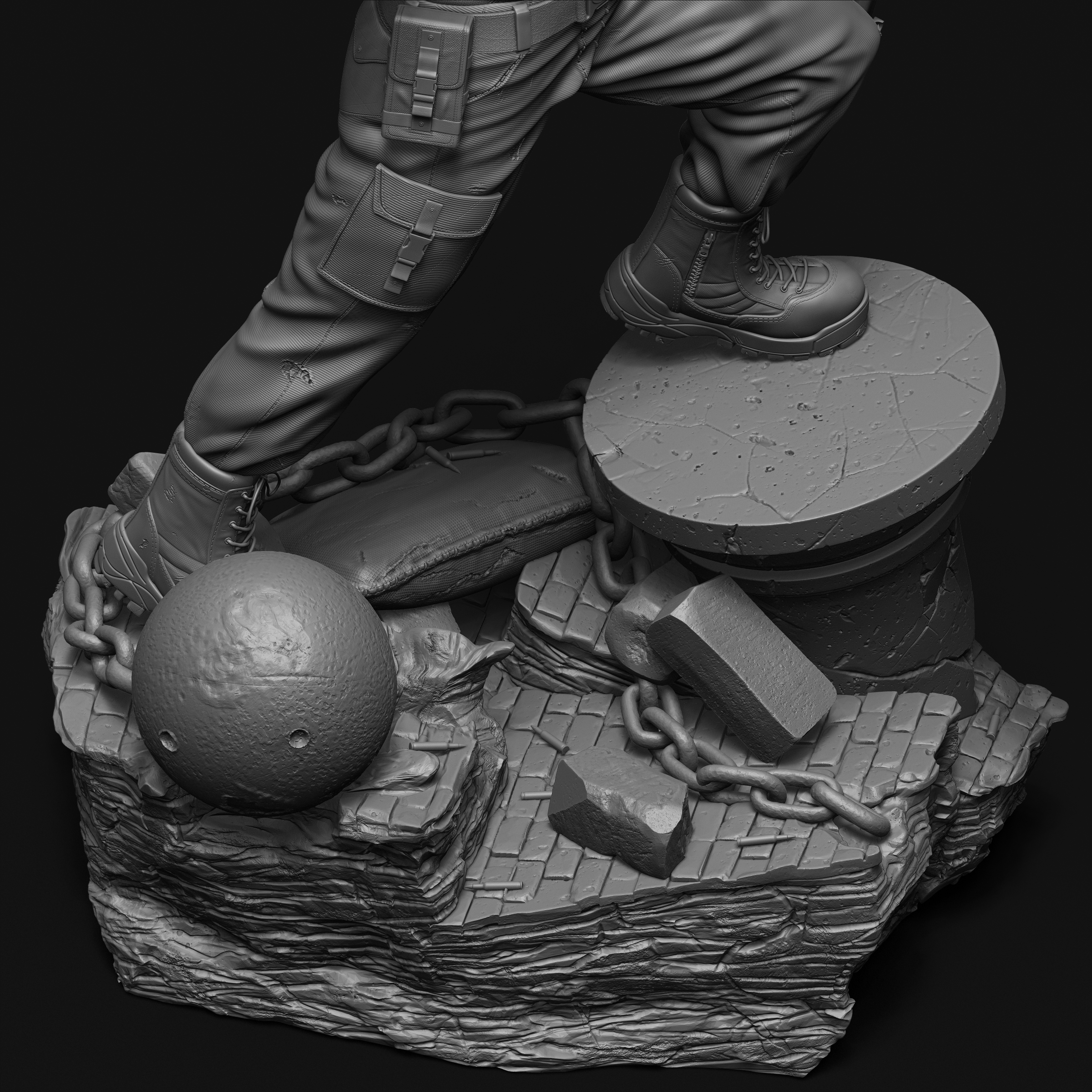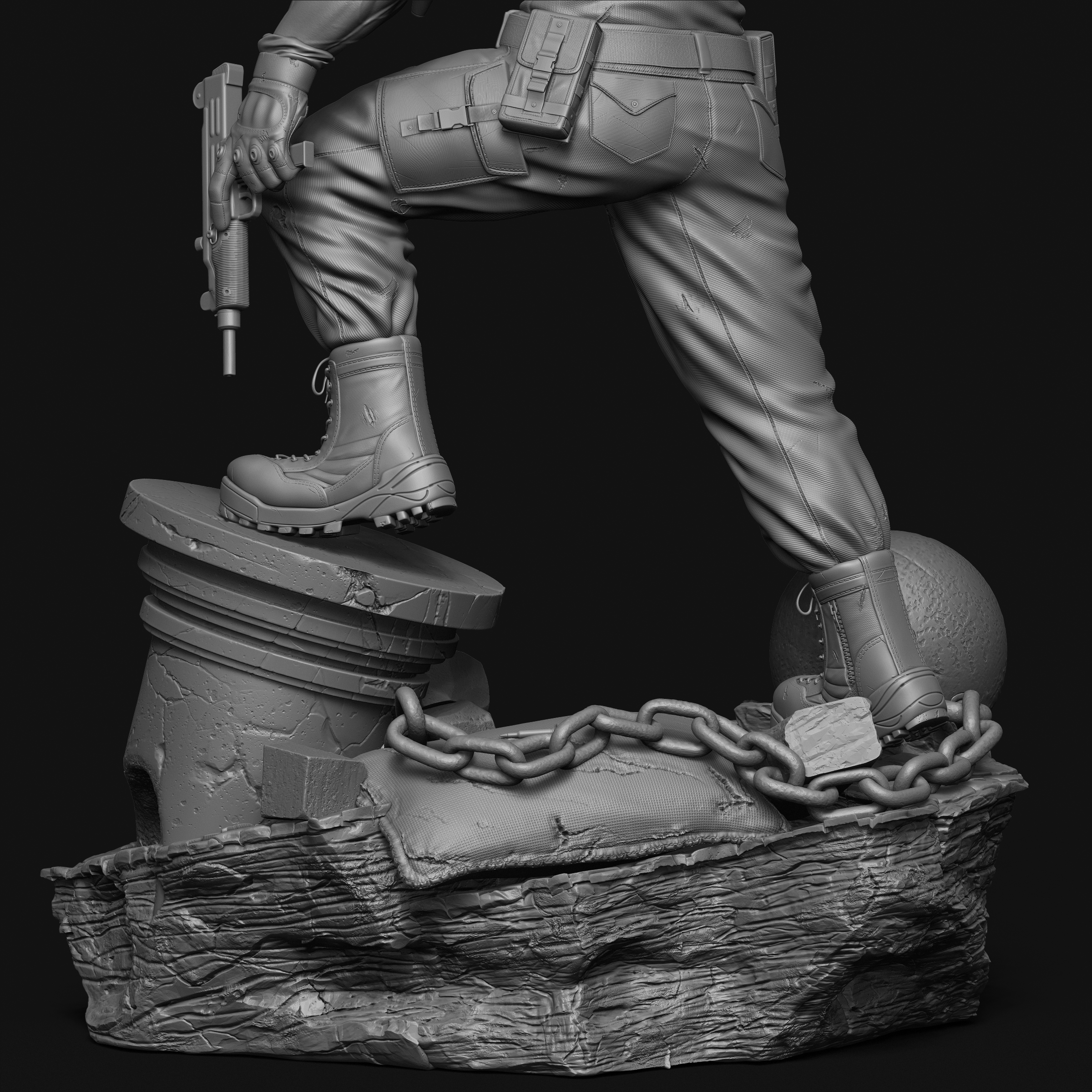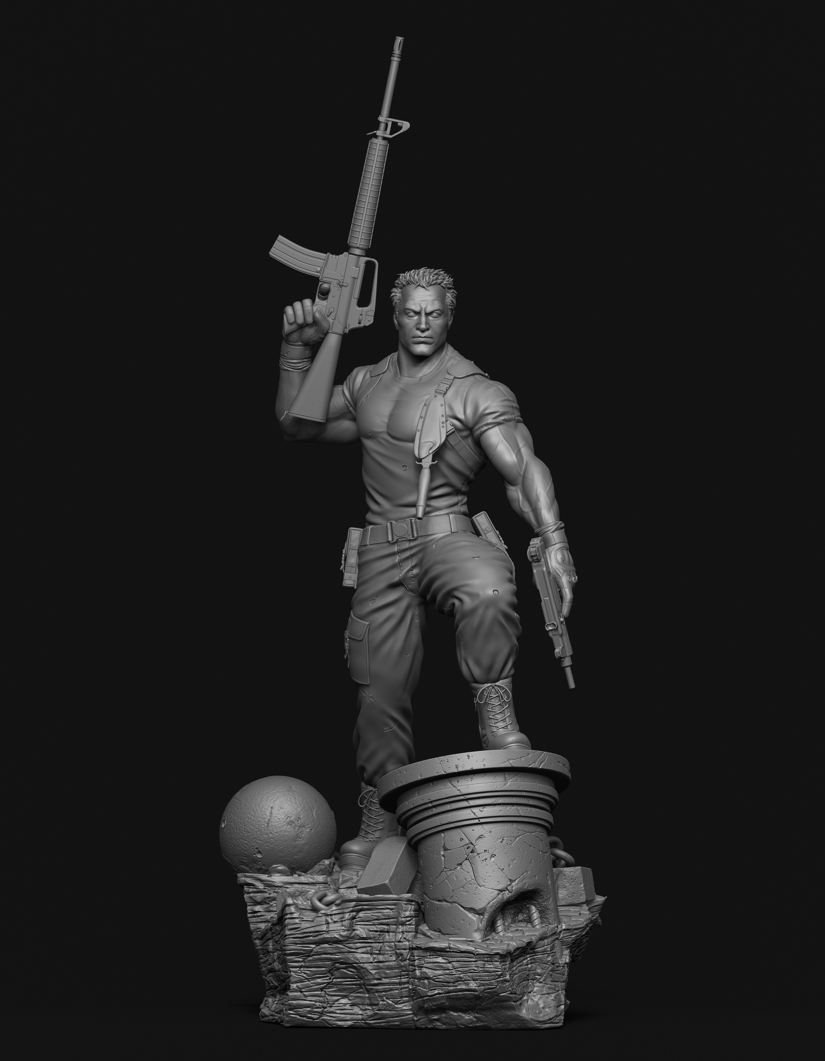 ZBrush used for Sculpting and rendering. Used few paid IMM brushes. Photoshop used for composting.