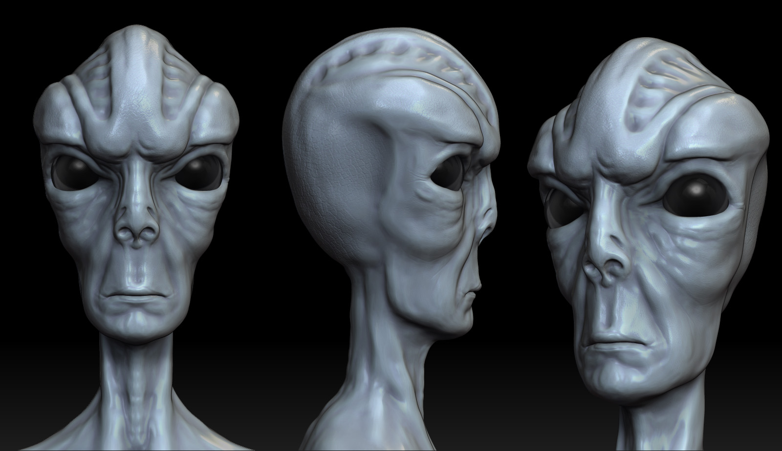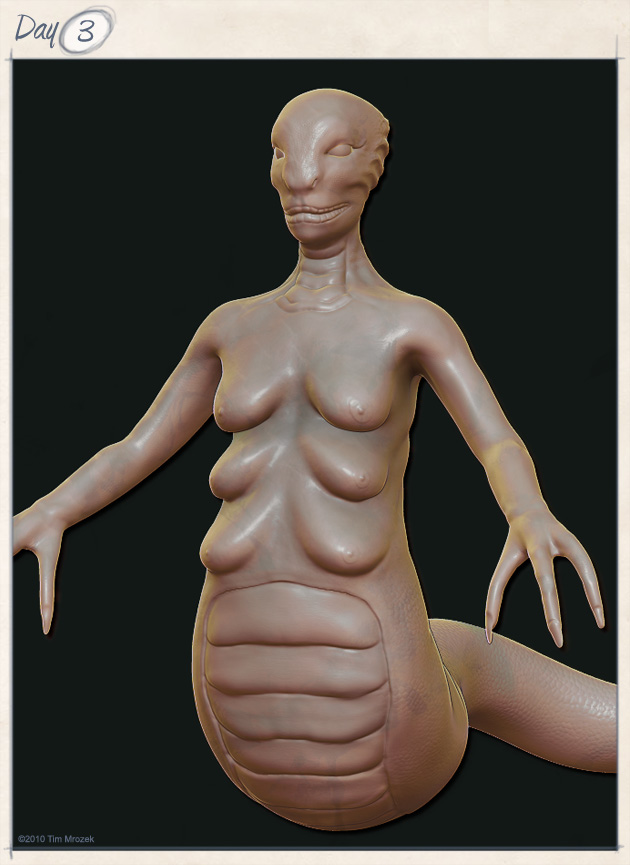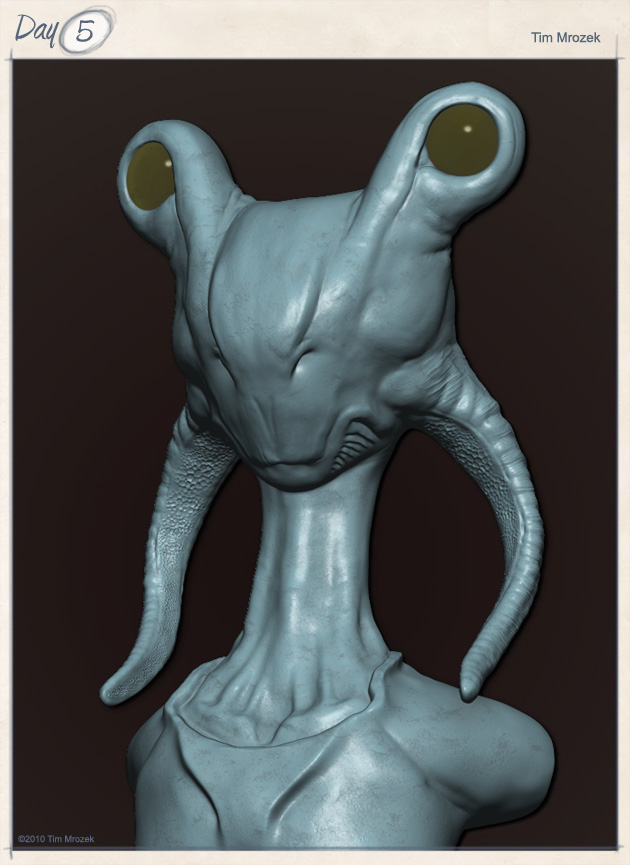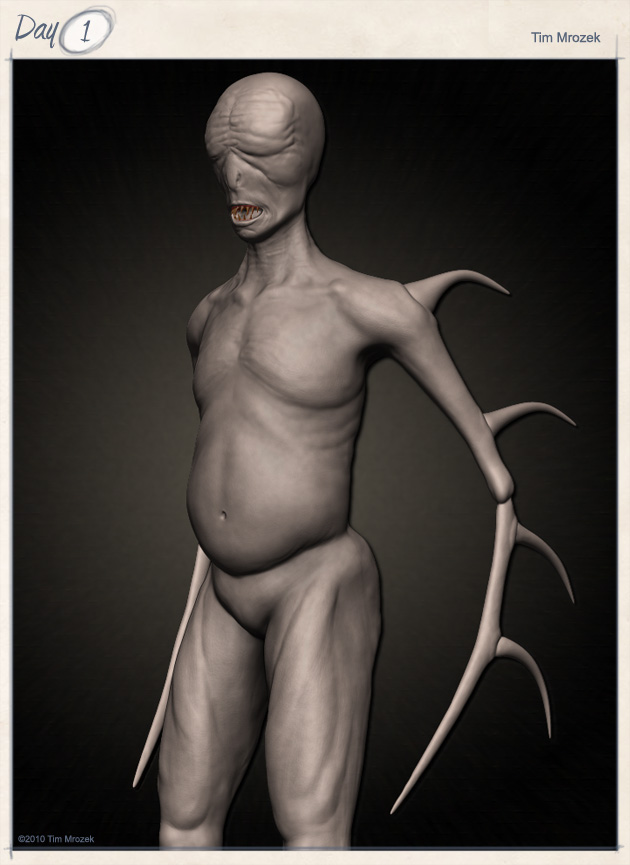 Well, maybe not pumping out as many concepts as I always wish I was, but then I’d be spamming these boards, so I guess it’s good. Got another alien. I wanted a really clean sculpt so she is not overly wrinkled and she’s pretty simple. Also, I did say she, I am trying to move towards making things more feminine as I’m realizing that I have trouble doing so. That’s why it’s probably impossible to tell if this creature is male or female or something else entirely. Anyway, anyones comments and crit are always welcome. It’s just a concept and it’s not finished so yes, I realize there isn’t really much skin detailing. Approximate time for completion was probably about 1 hour and 15 minutes.