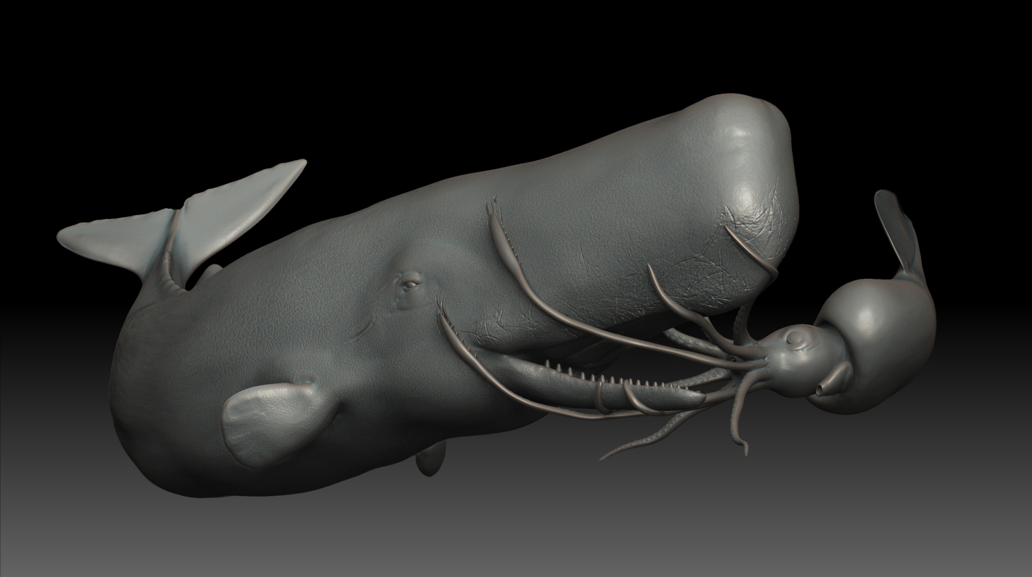 So I’ve gotten a bit more done. Did a lot of accuracy work on the whale and I’ve begun to pose the two models. Still a ways to go but I’m happy with where this is heading so far. Don’t hesitate to comment or crit: