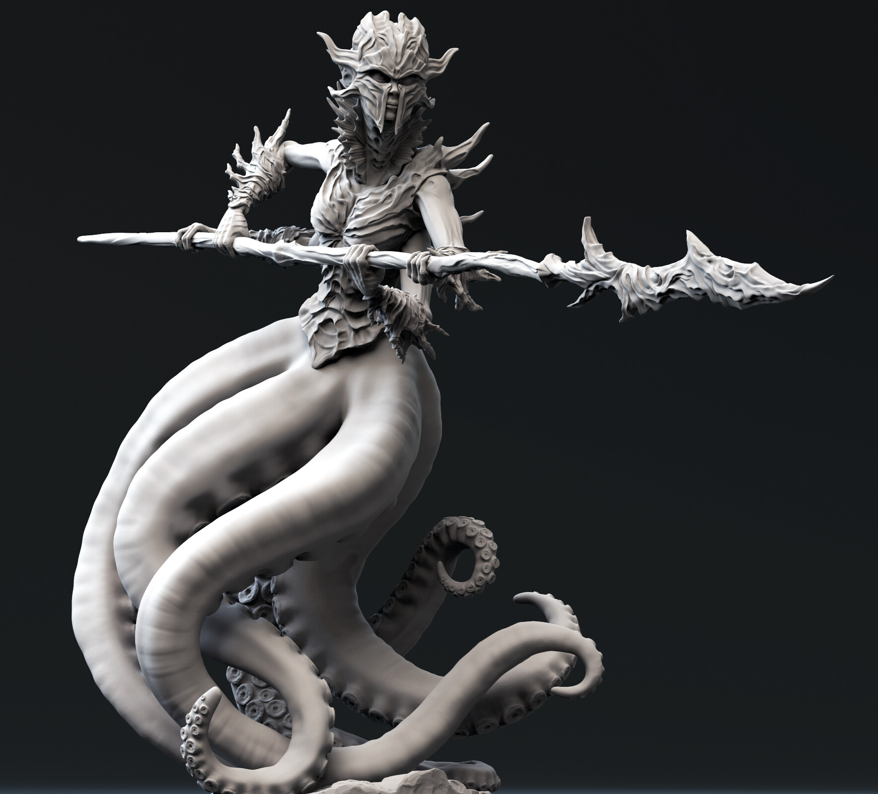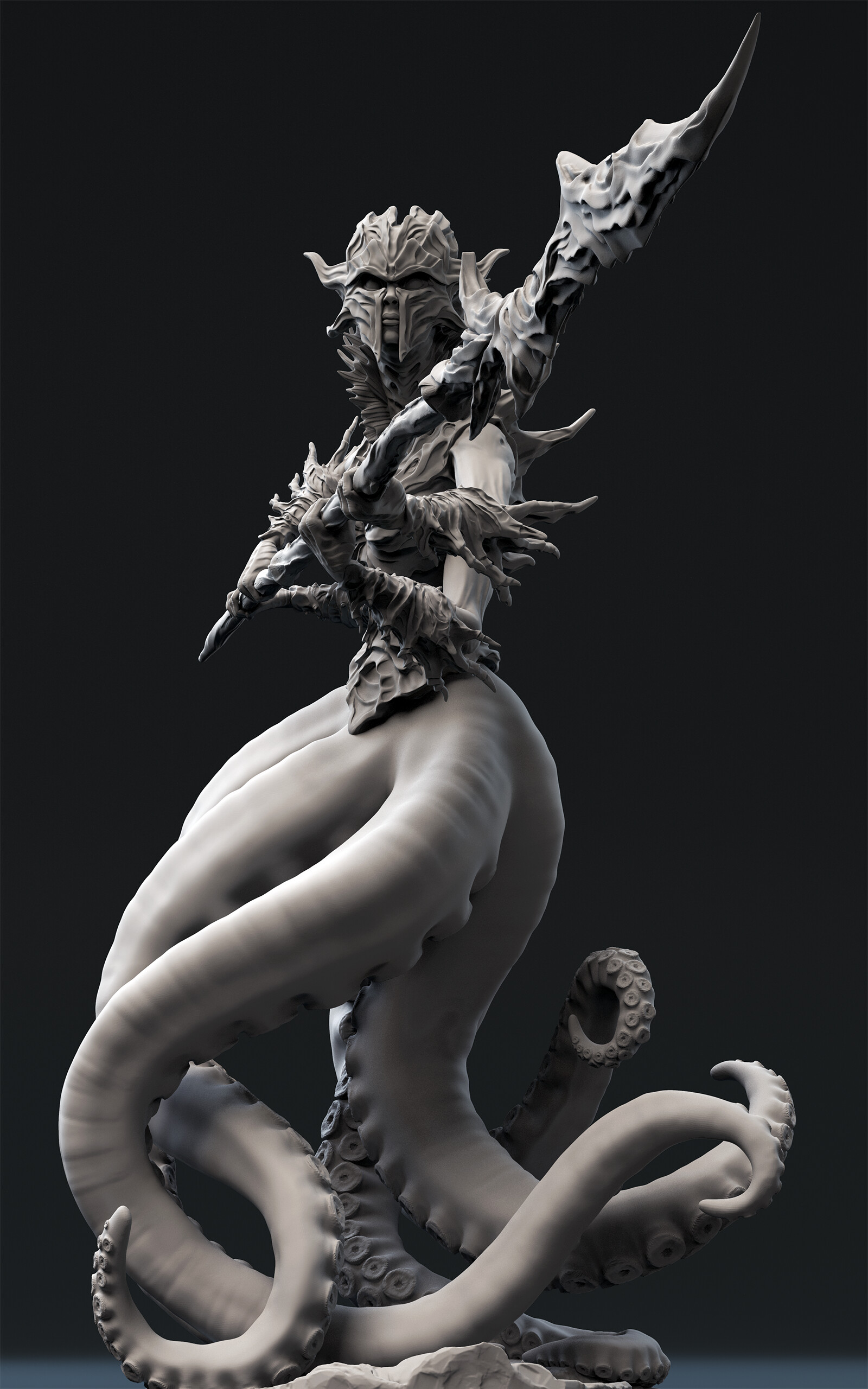 Hello! Here’s the second character of a 3 part series I worked on for the Lord of the Prints March release, the Cecaelia Spearwielder!