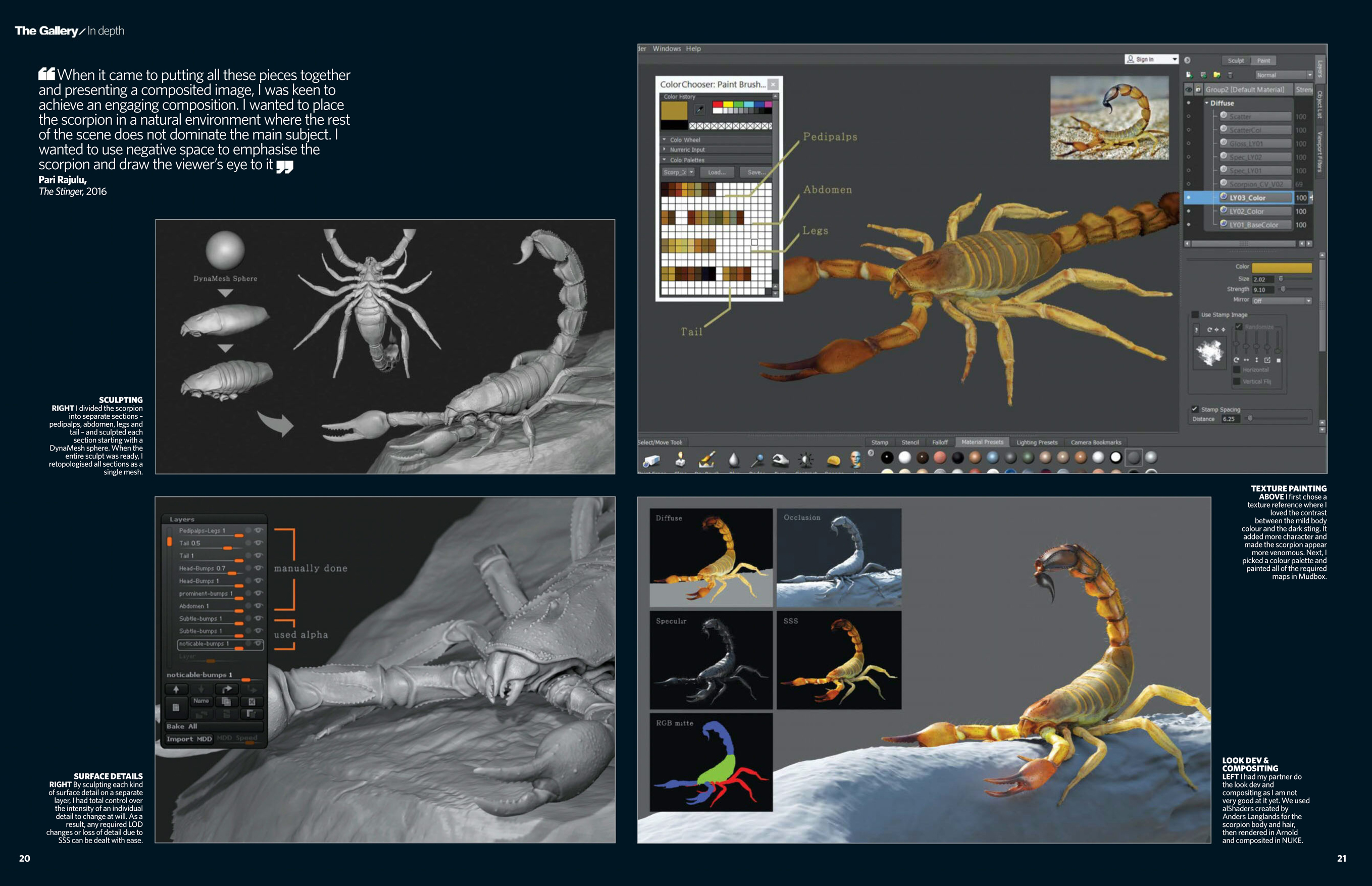 ‘The Stinger’ got published in 3D Artist magazine and I have shared those pages too.