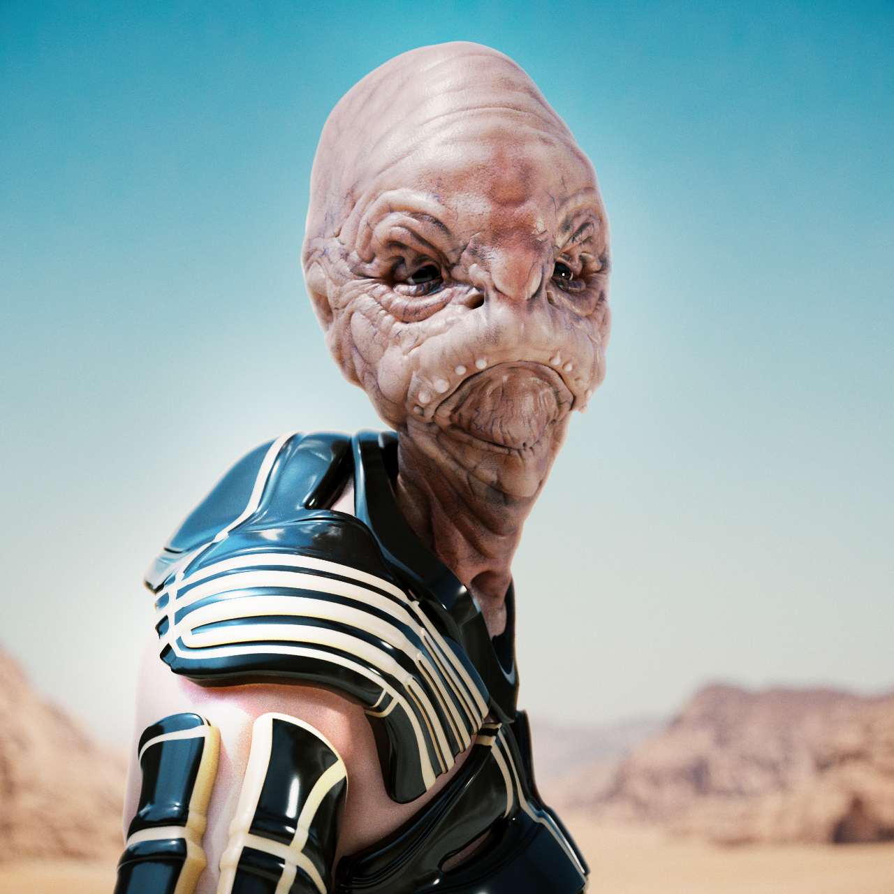 Nice touch on the veins and bumps on the mouth! The environment feels very Area 51