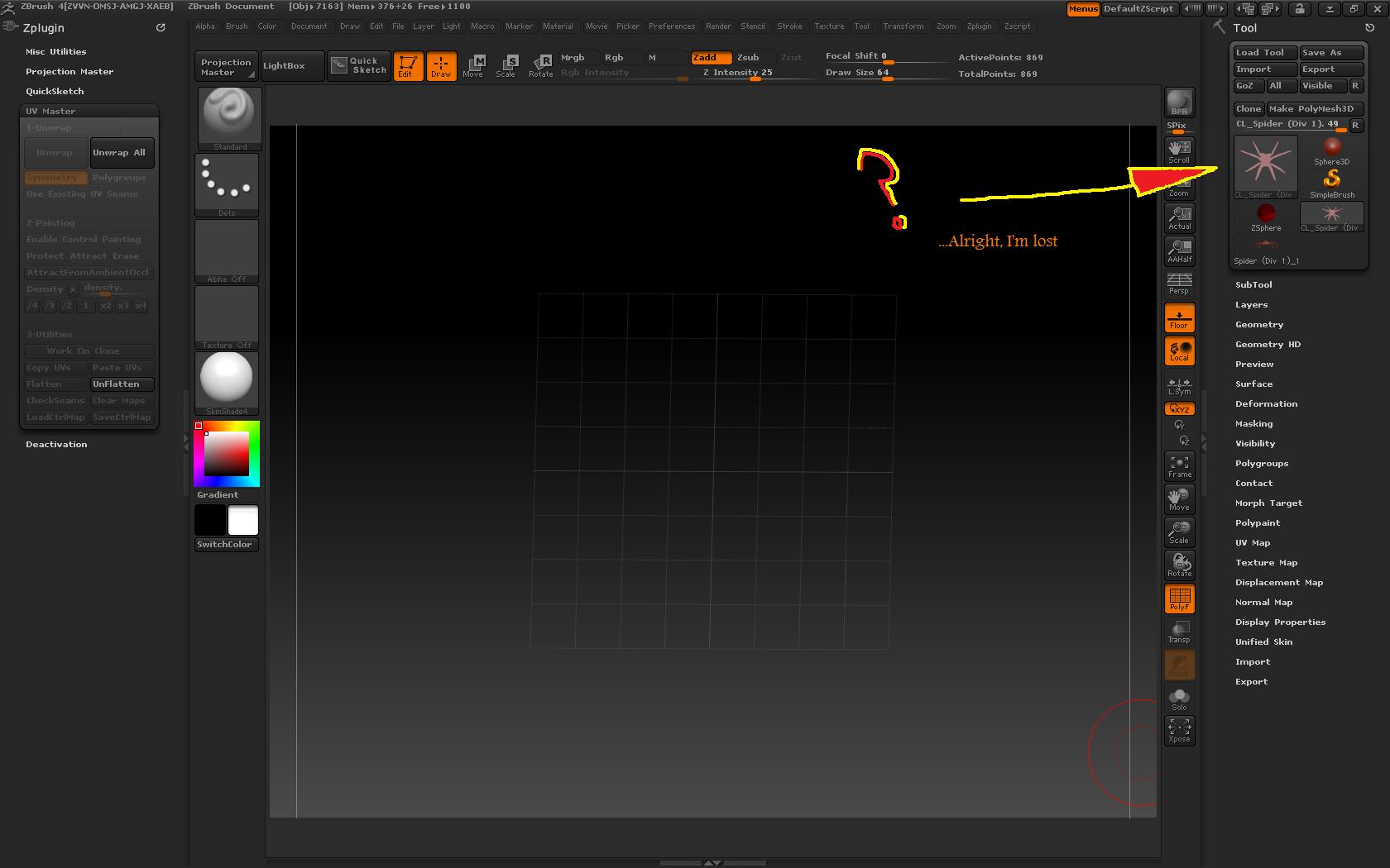 Hey guys, just started using UV master and went through the tutorials in the Zclassroom, but when I ‘‘Work On Clone’’ -> ‘‘Unwrap’’ -> Flatten my model it doesn’t show up on my screen