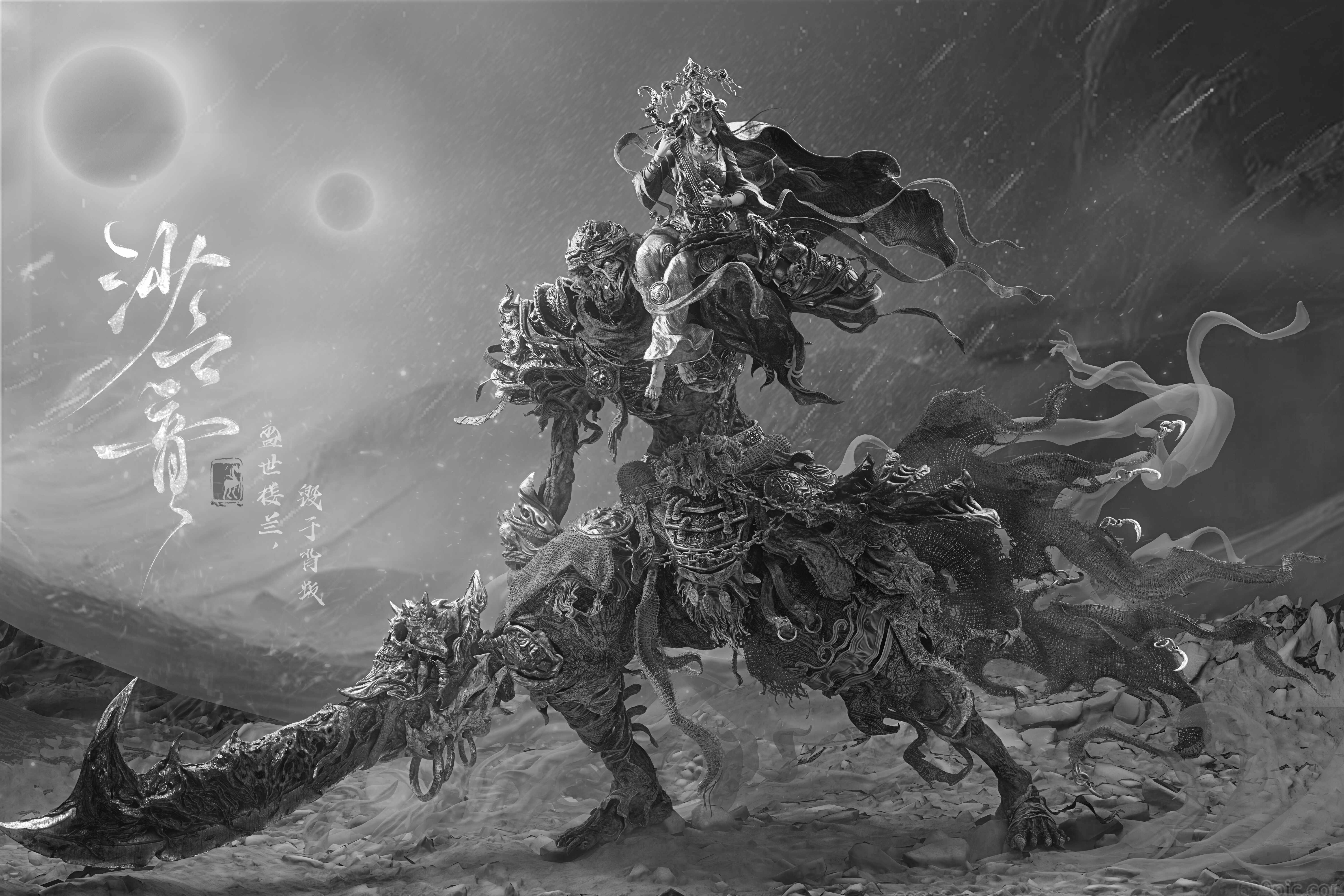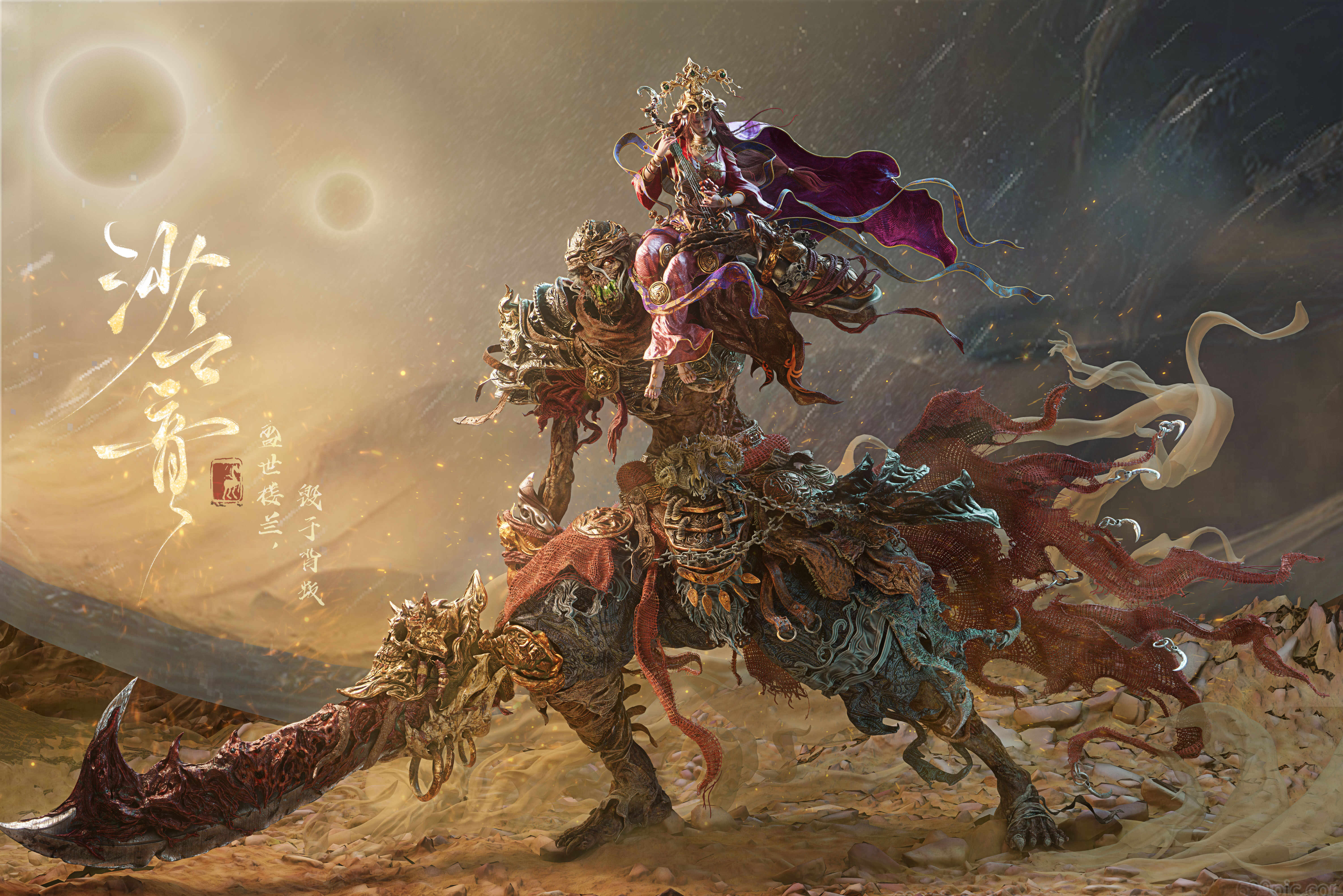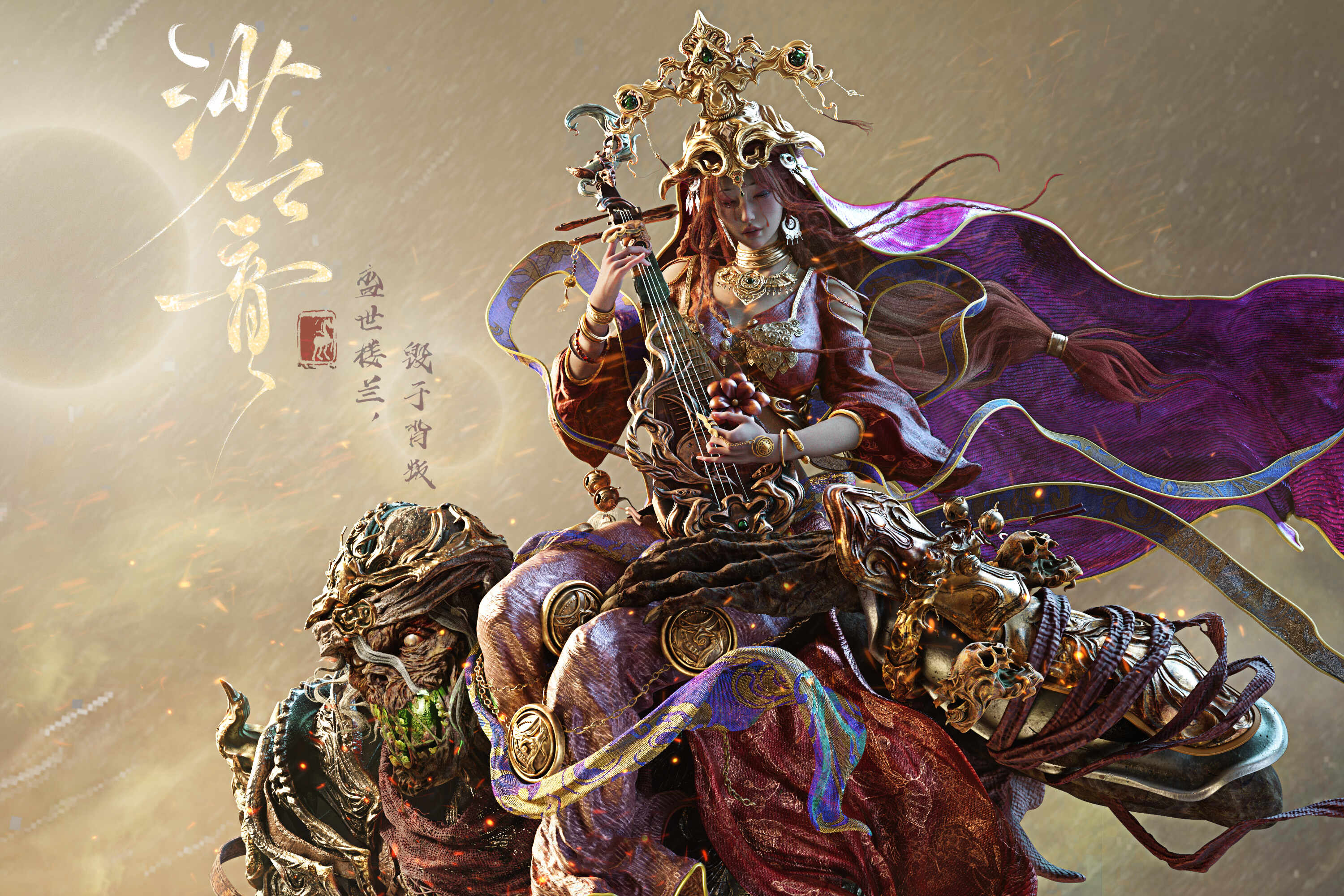 “ 盛世楼兰,毁于背叛。绝世美人,血弹琵琶。茫茫沙漠,生人勿进。地狱之音,谁敢倾听。”在看到原画的第一眼,我就被其中的悲凉氛围所吸引,死而复生的守护,痛苦而绝望的背叛,死亡的大漠之音,这其中的氛围让我深受震撼,在此理解下最终得到了现在的画面效果。