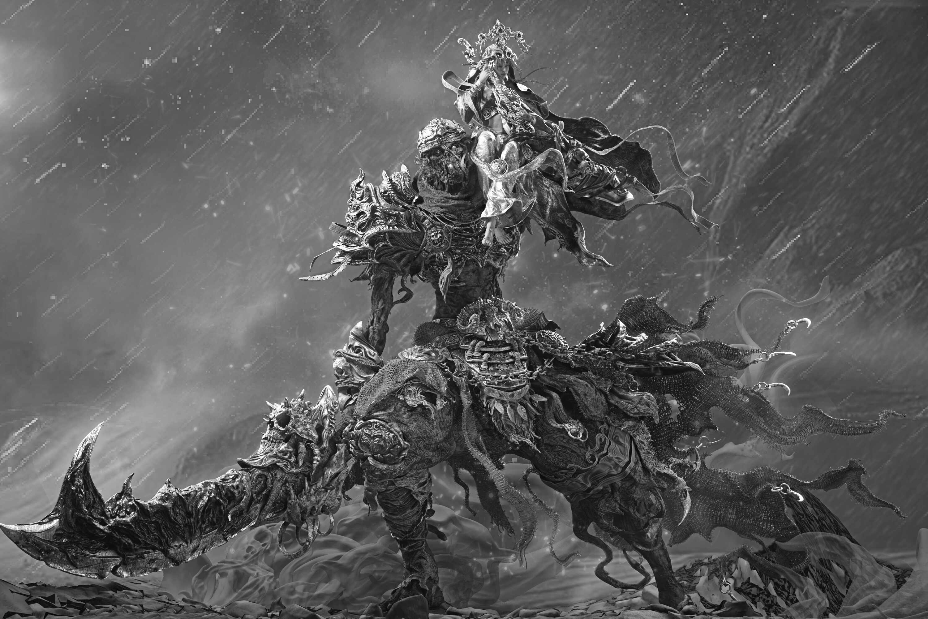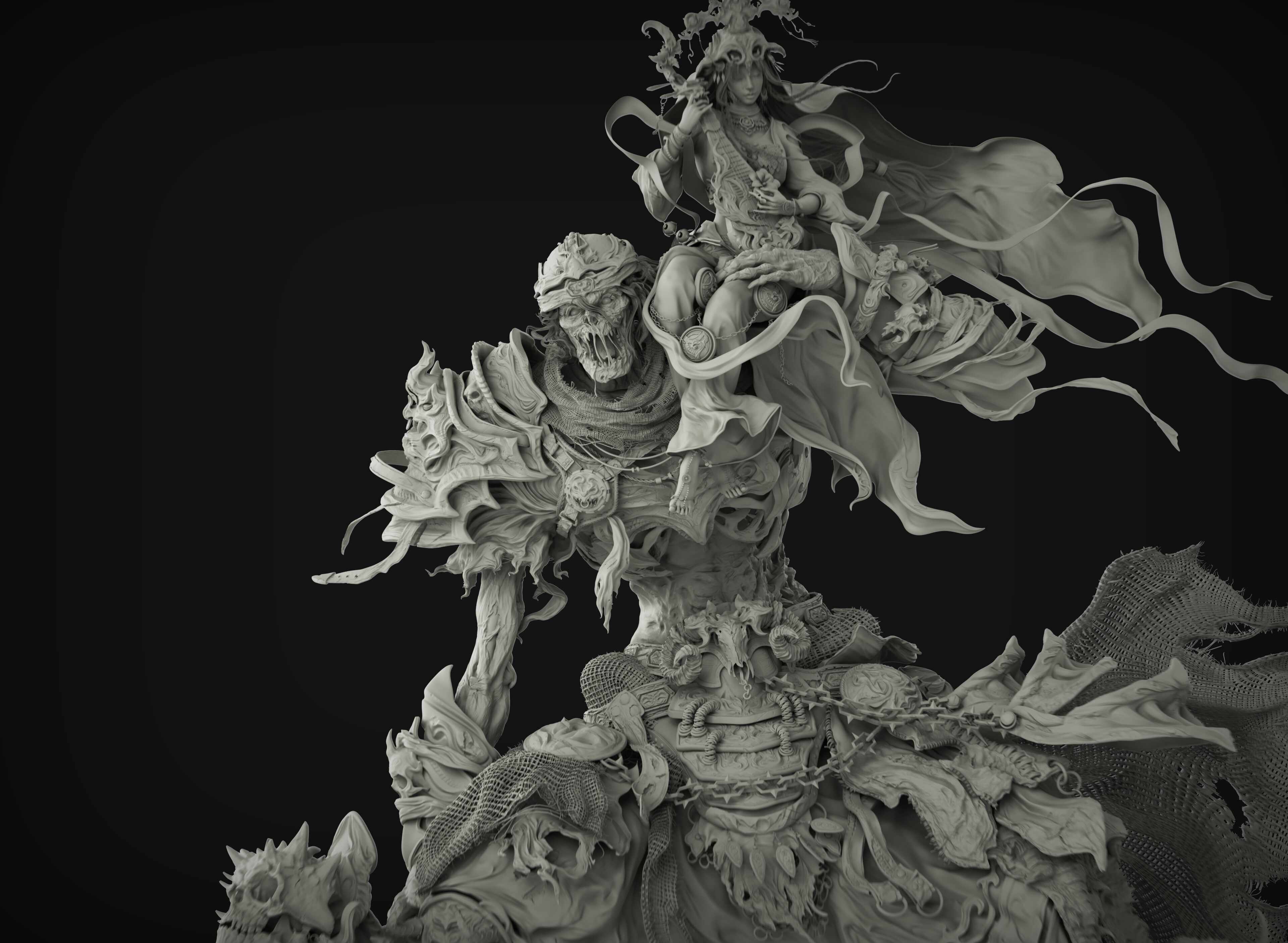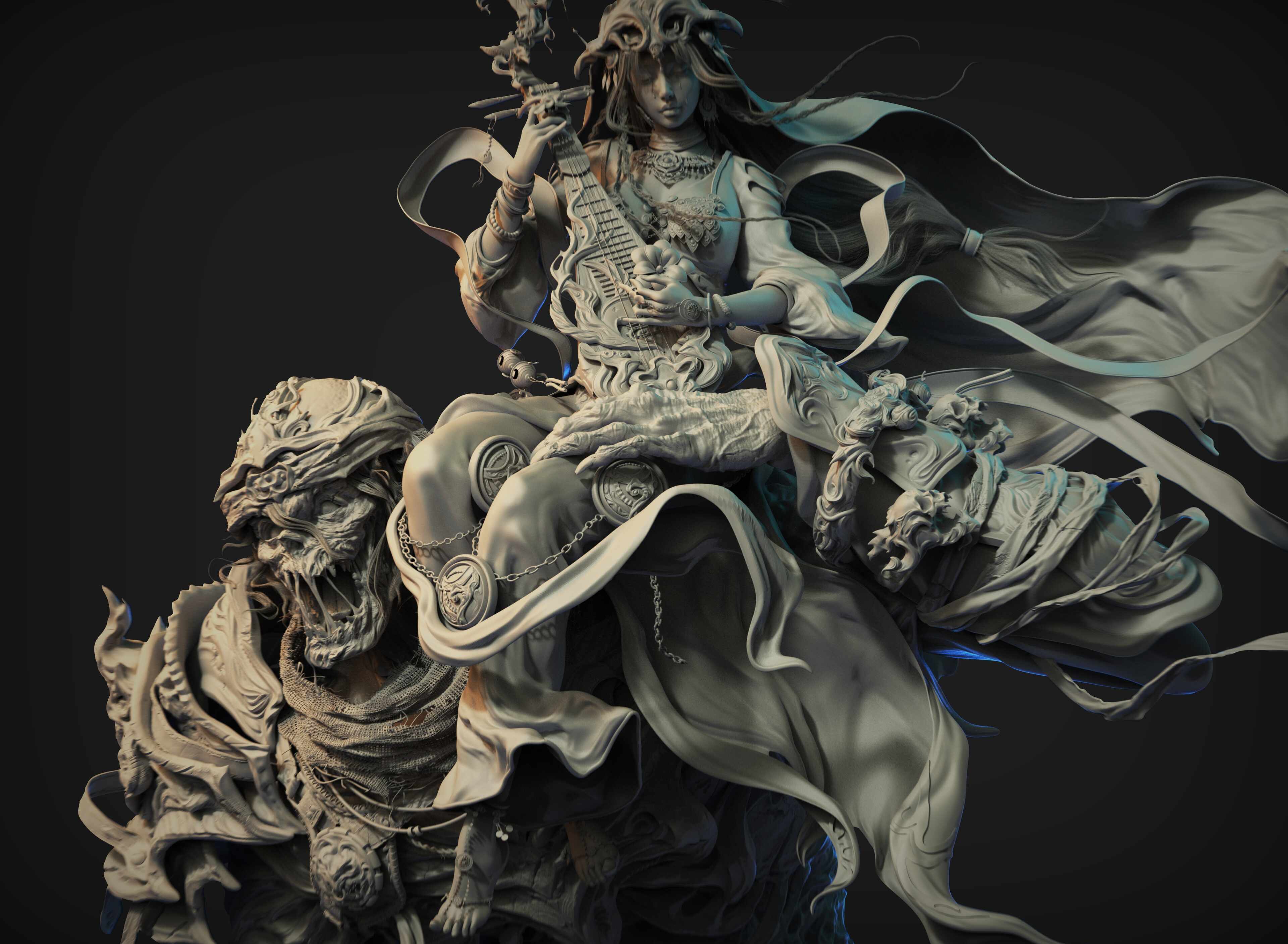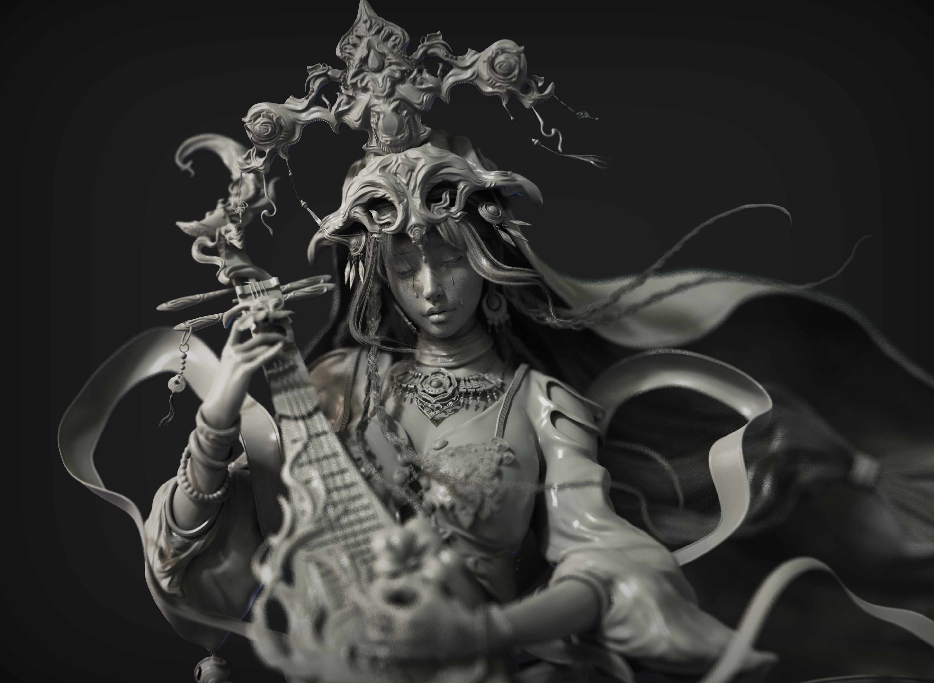 “ 盛世楼兰,毁于背叛。绝世美人,血弹琵琶。茫茫沙漠,生人勿进。地狱之音,谁敢倾听。”在看到原画的第一眼,我就被其中的悲凉氛围所吸引,死而复生的守护,痛苦而绝望的背叛,死亡的大漠之音,这其中的氛围让我深受震撼,在此理解下最终得到了现在的画面效果。