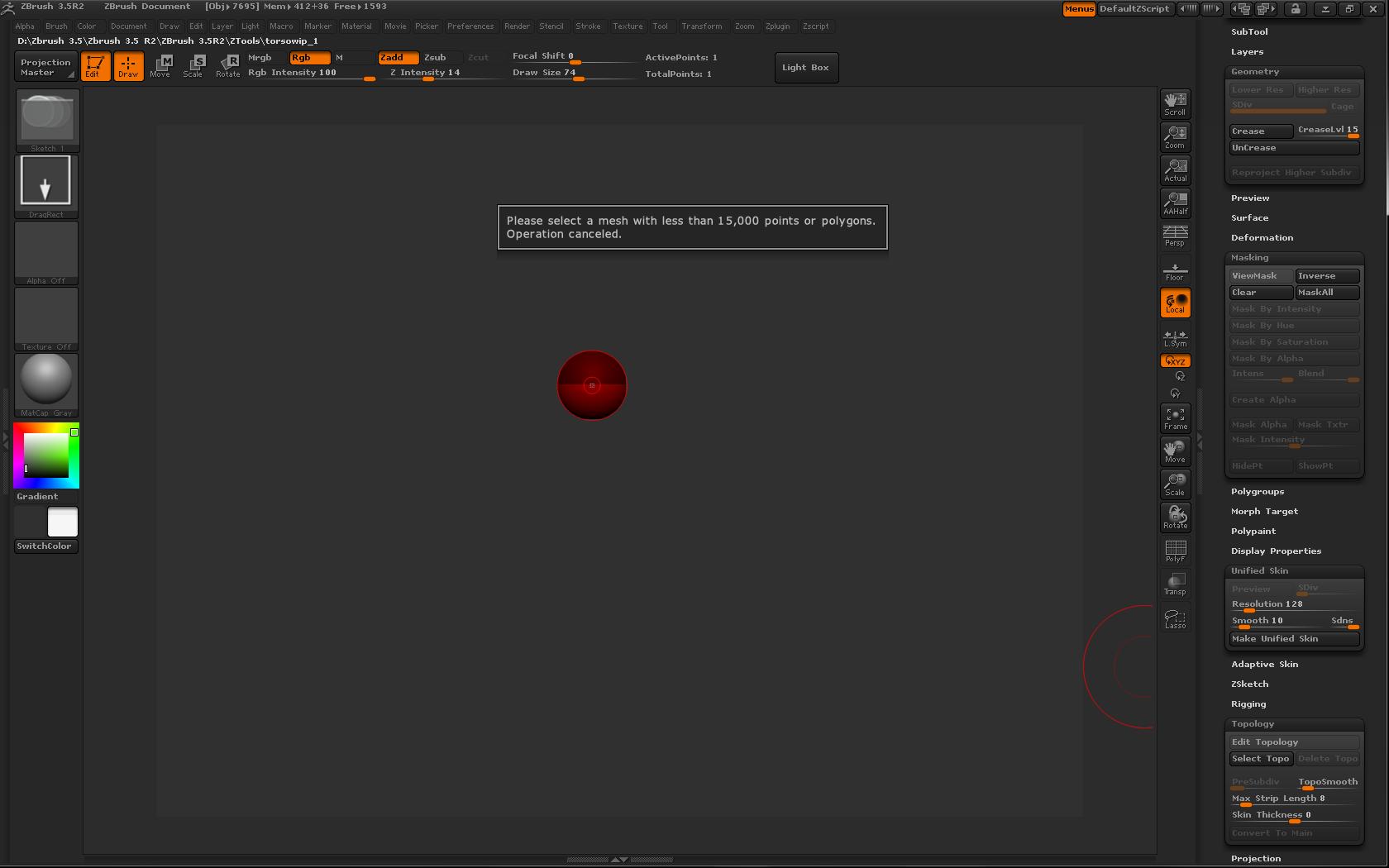 why is it that when i try to retopologogize my base mesh, i get an error or message saying that my mesh must be below 1500 points or polys?