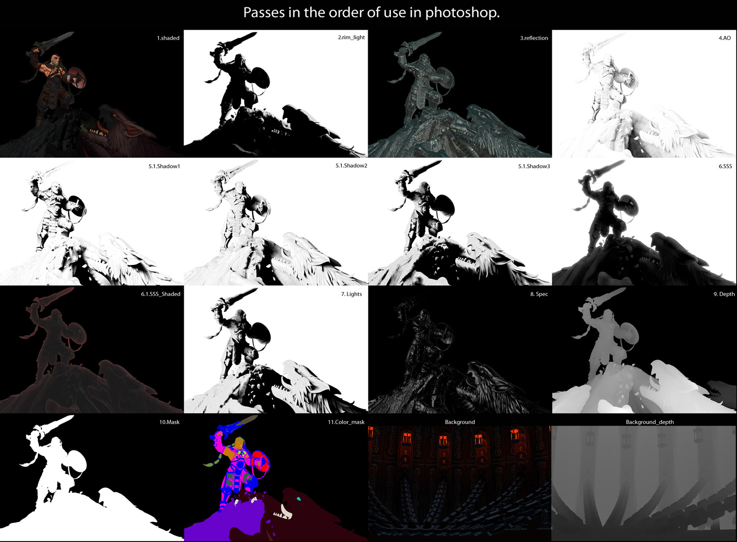 Could you please share the technique you used to make your “color mask” comp? Did you simply fill all the subtools with a color then use “flat color” material? Was wondering if there was a faster way.