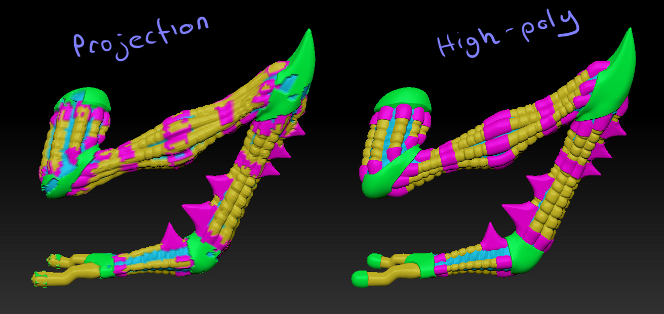 I created a model in zbrush, then retopologized in 3dcoat, and uv’d in maya. Now I want to project color from zbrush onto my uv’d low poly model, so that I have color masks that I can use while texturing.