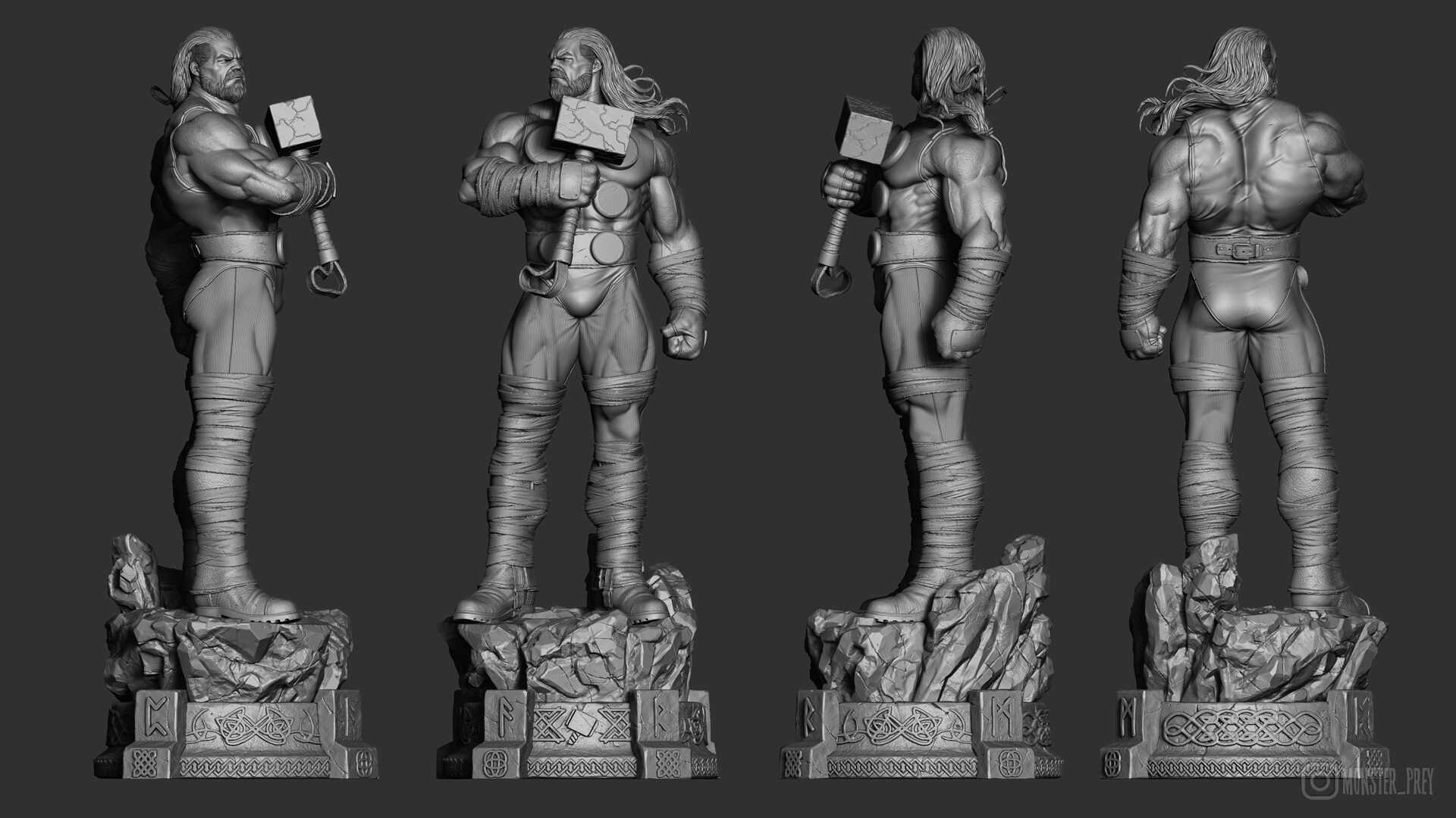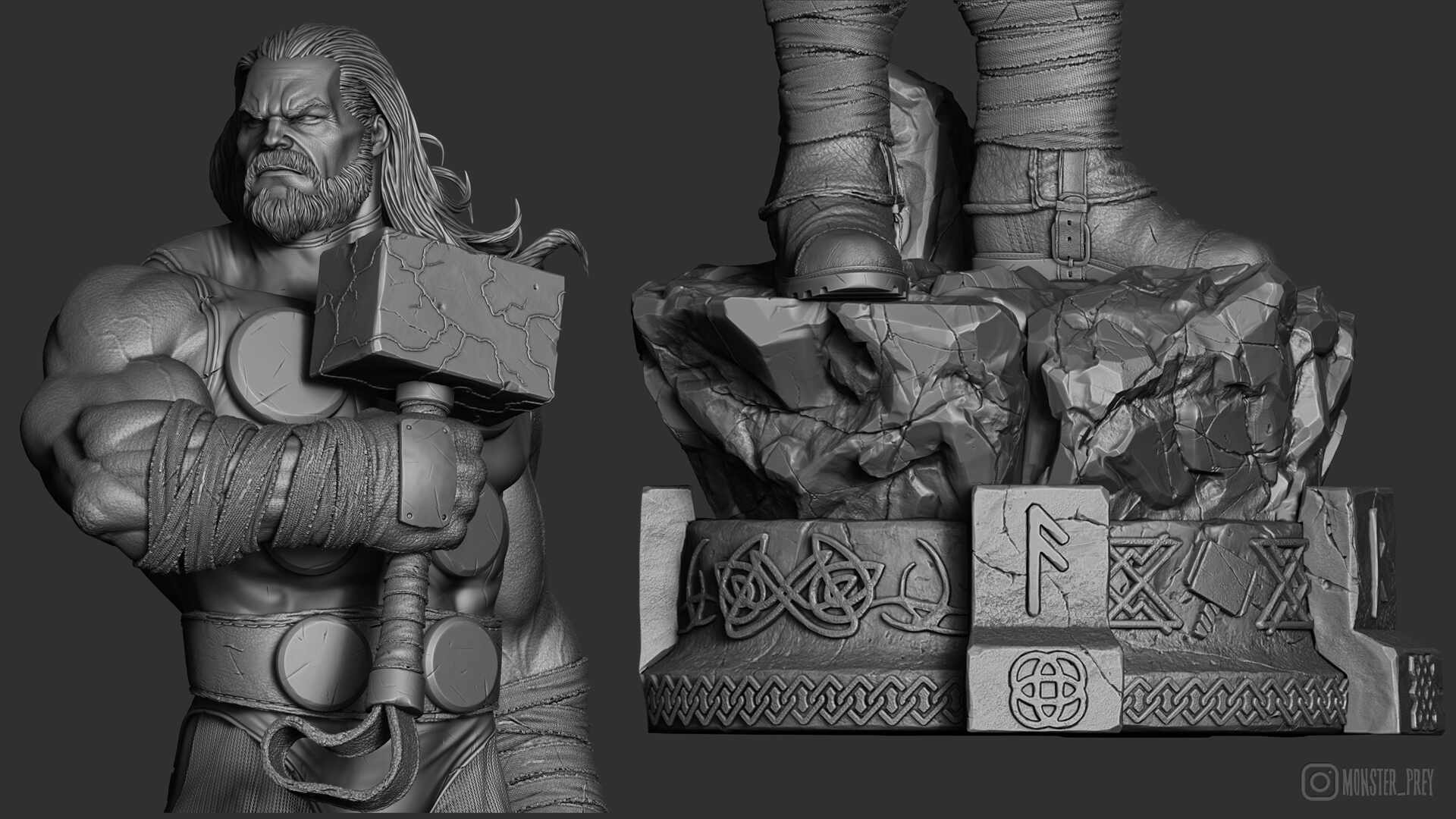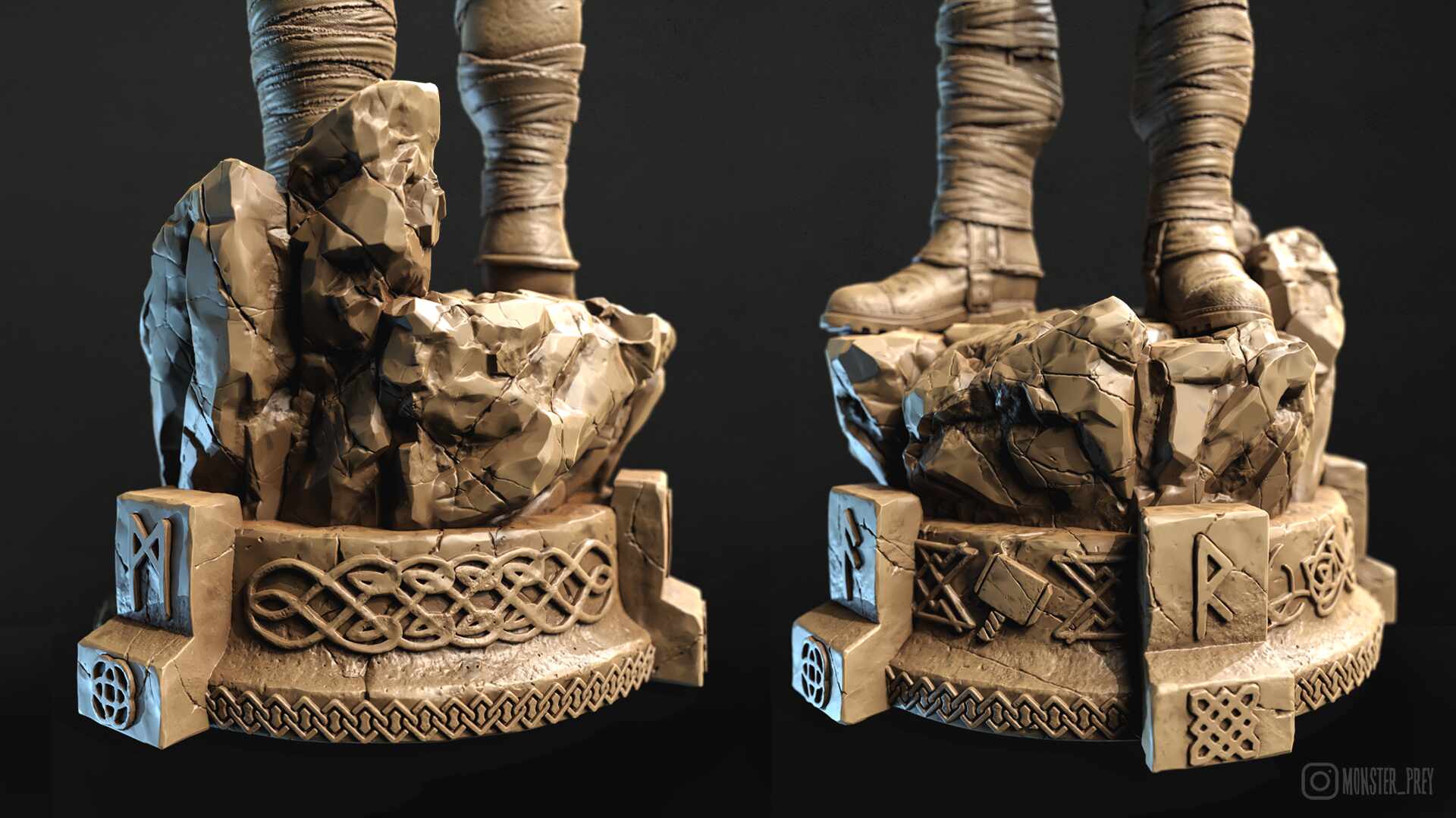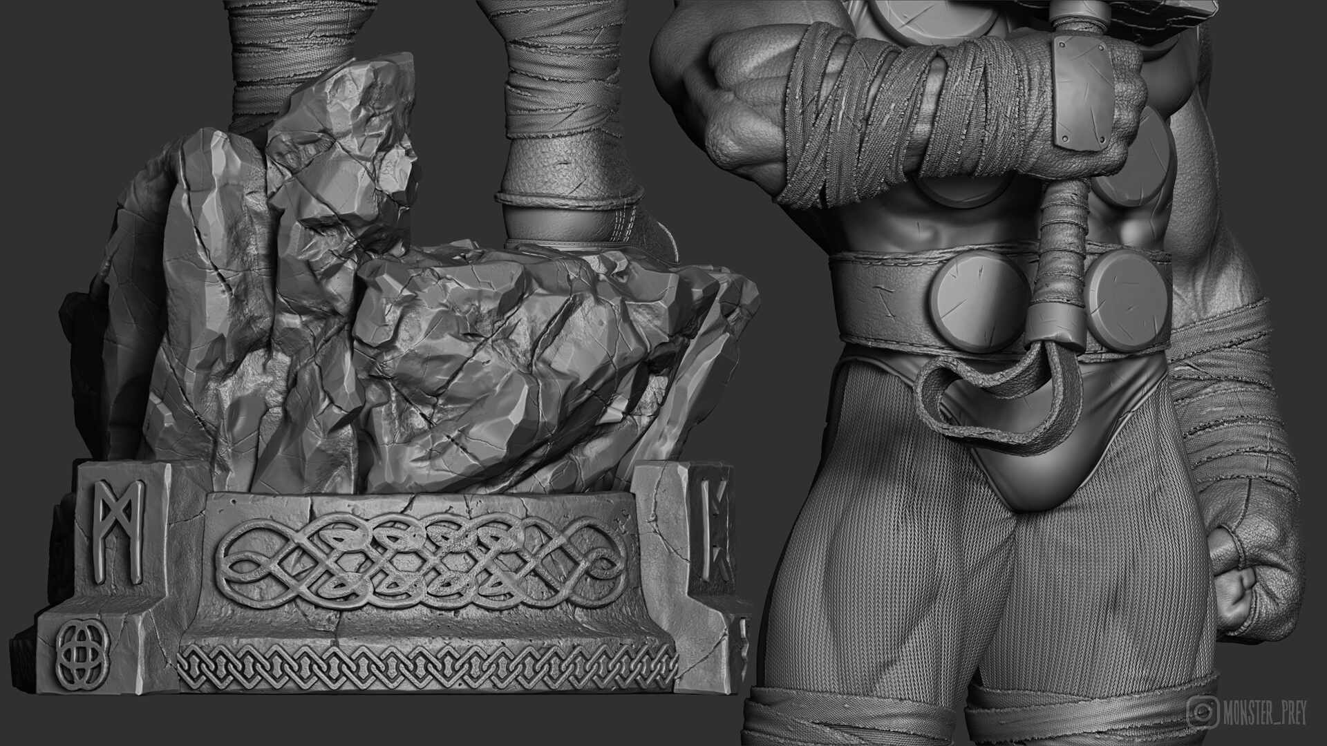 I sculpted the entire figure and base in ZBrush. I did the 3D renders in Marmoset and the final composite in Photoshop.