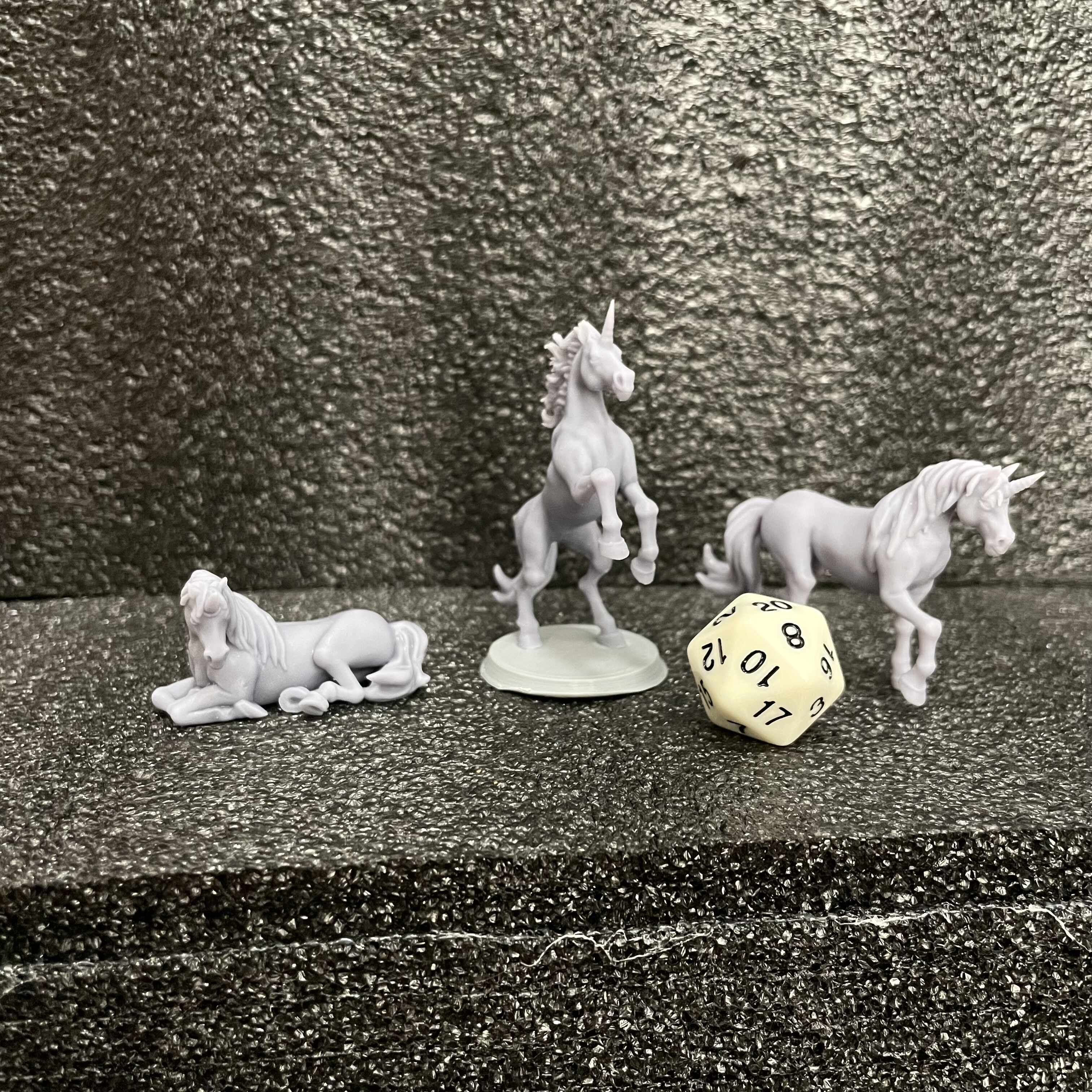 Set of Unicorn miniatures sculpted at 32 mm scale for tabletop gaming or just for fun painting.