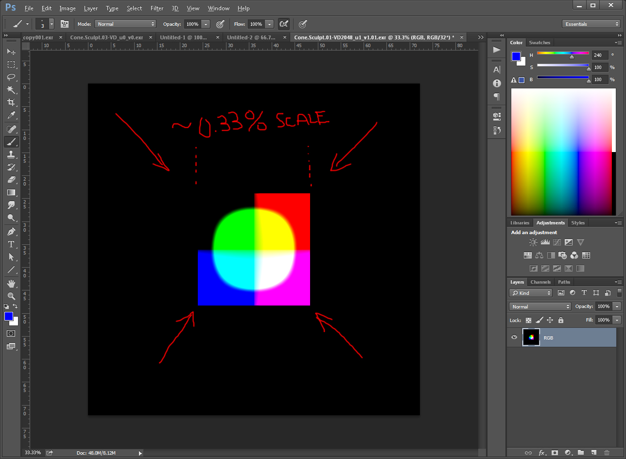 The problem is that whenever I export the VD maps it doesn’t respect the UV layout. It looks like the information was scaled down to one third the size.