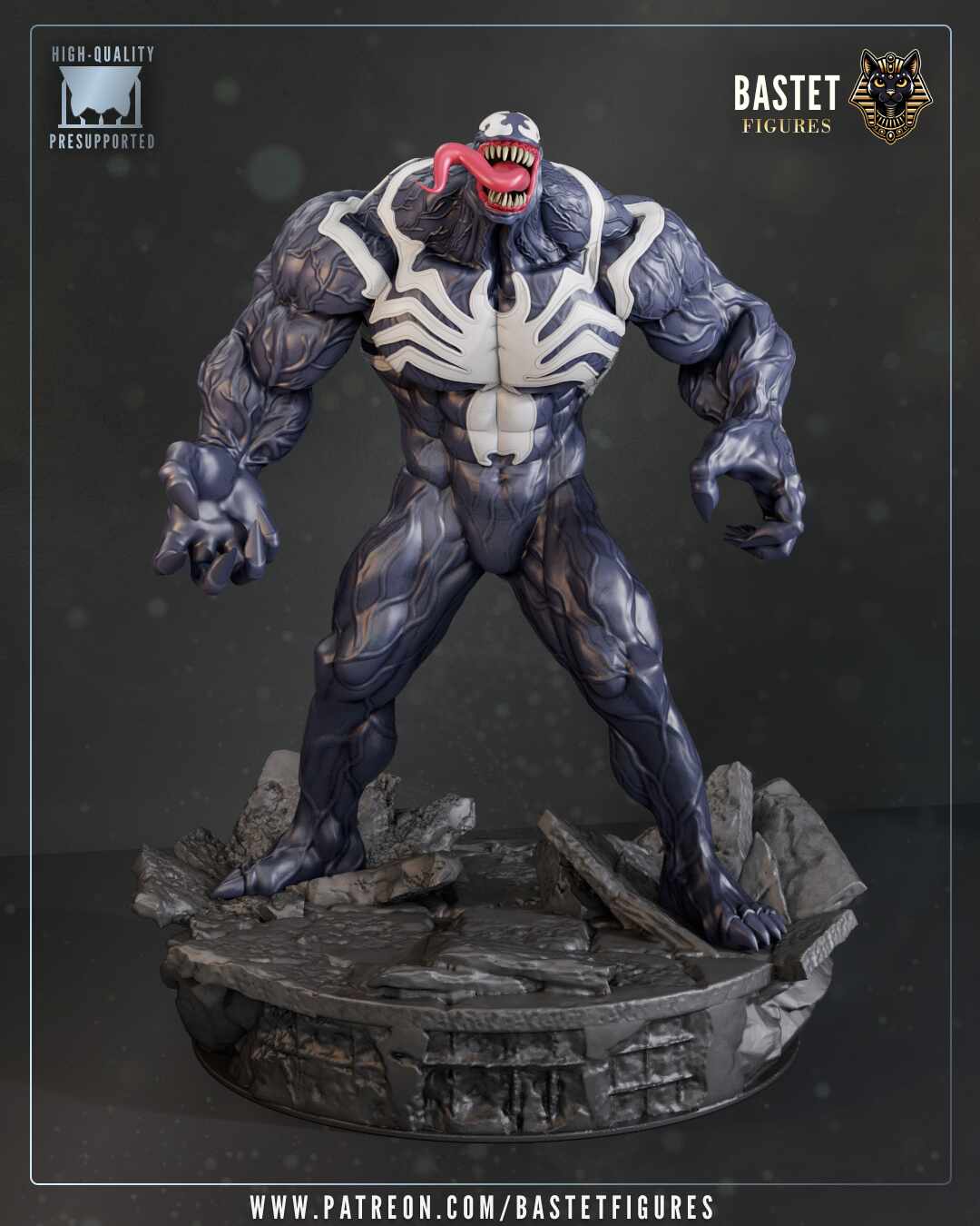 Venom emerges from the shadows, his monstrous form pulsing with raw power and hunger. Figure sculpted for Bastet Figures.