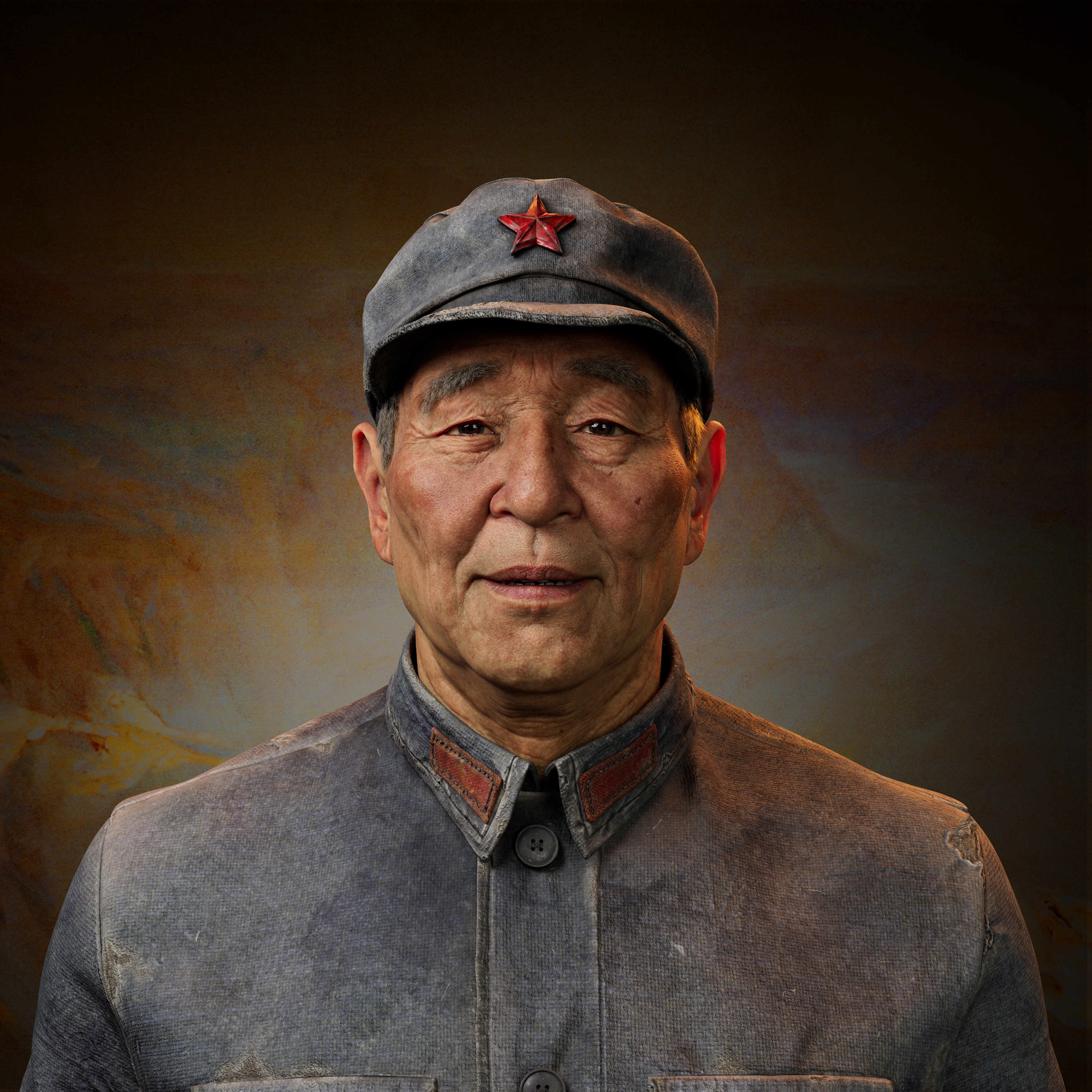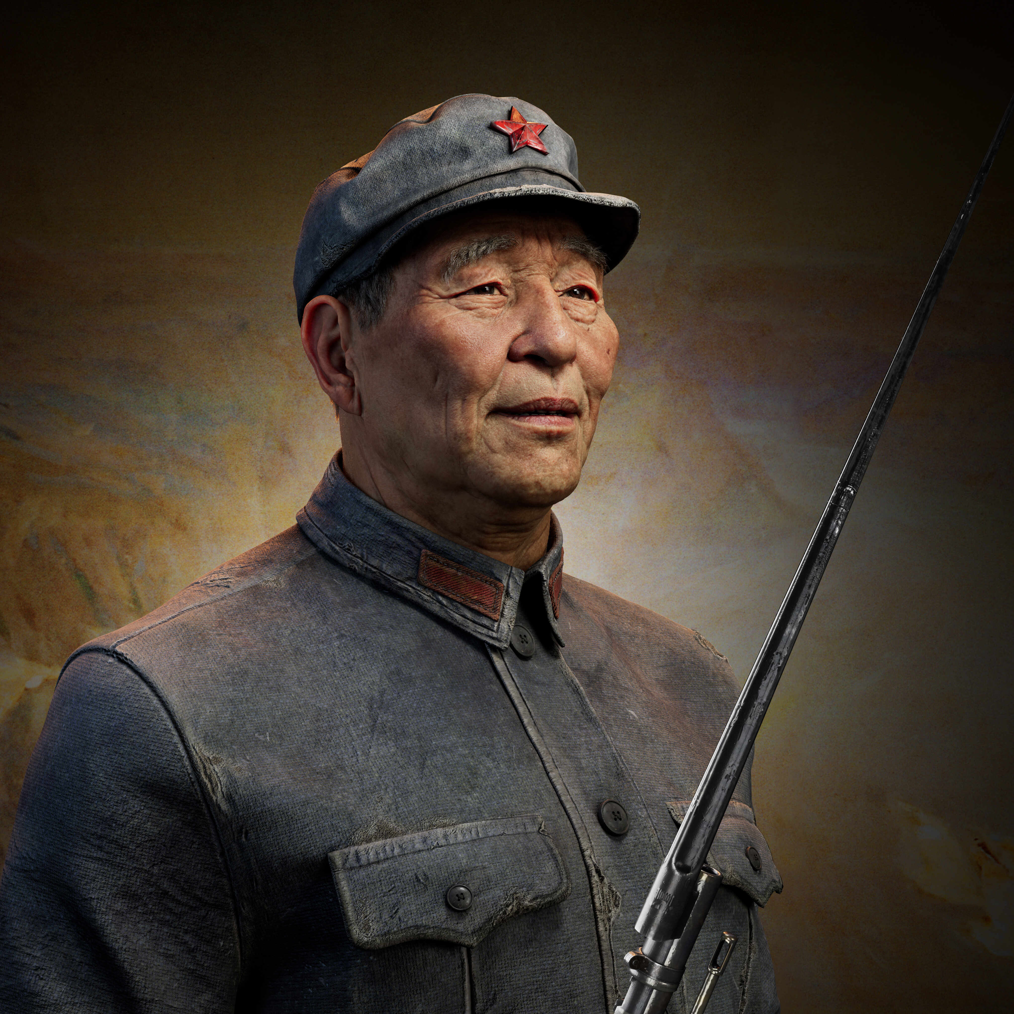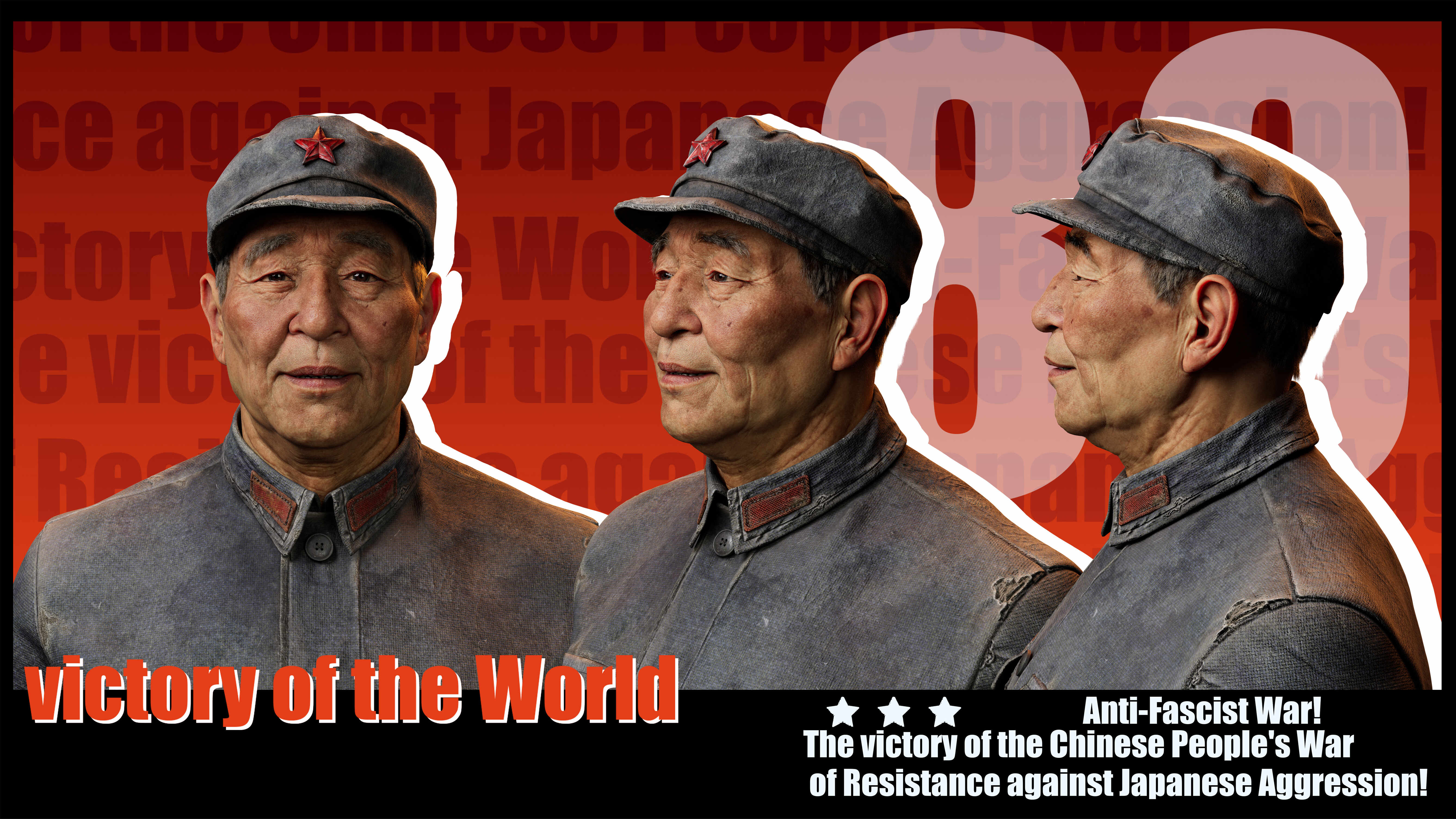 The first three works are grounded in realist historical themes, inspired by Chen Yifei’s masterpiece “Ode to the Yellow River,” depicting a Red Army soldier standing resolutely amidst vast landscapes. The figure evolves from a young soldier to a veteran, modeled after my grandfather, clad in faded gray military attire, worn straw sandals, and a leather belt. His posture and steadfast gaze into the distance silently convey the conviction and strength of the revolutionary era. Through a somber palette dominated by gray and yellow hues, the composition eliminates superfluous details to accentuate historical gravitas, paying homage to the ideals and sacrifices that defined those tumultuous years. The latter three works employ a contemporary collage-poster style, juxtaposed with the veteran’s image to create a sense of pop art, bridging past and present through visual dialogue.
