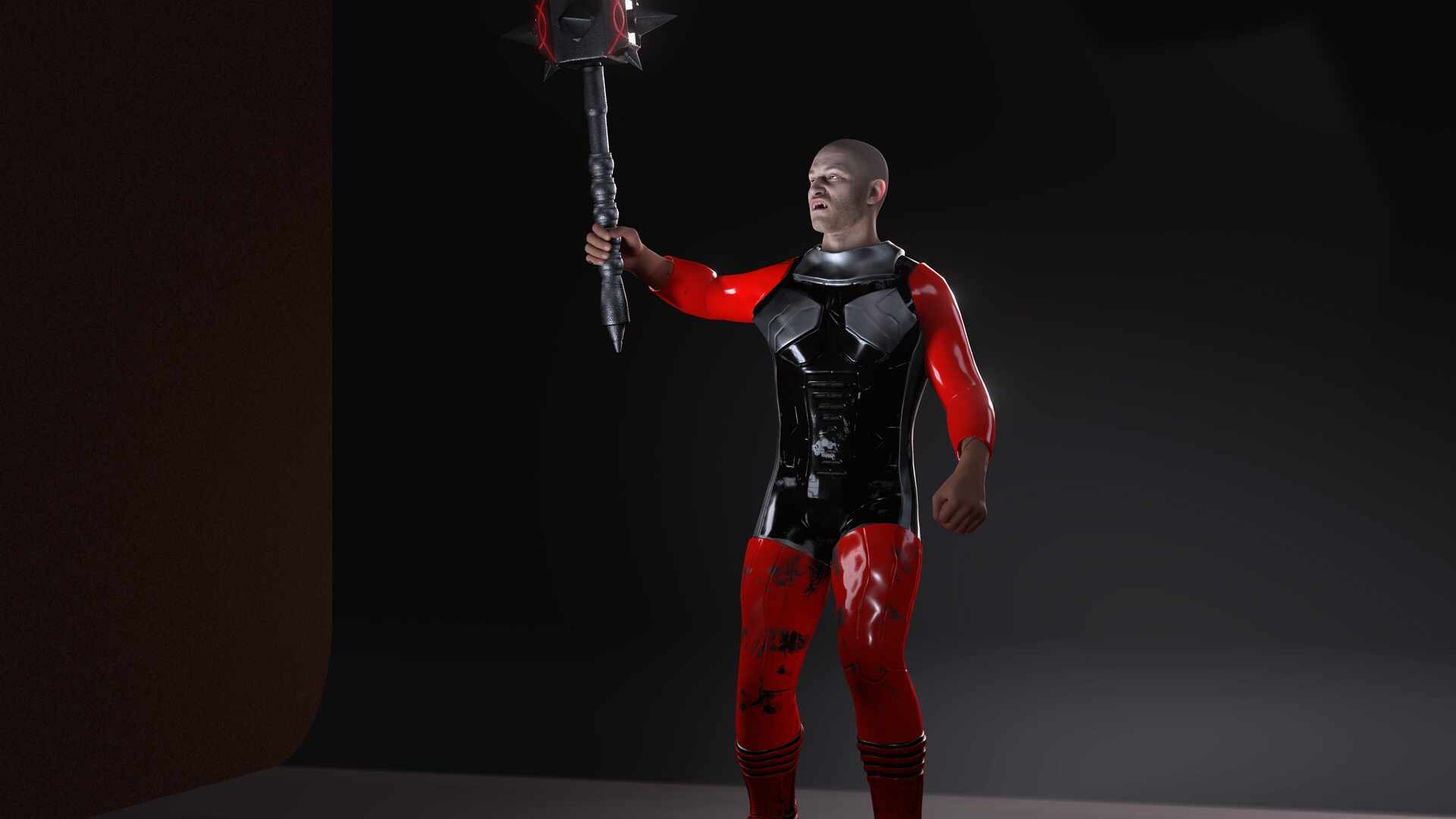 Warloc in a metal suit with a hammer axe