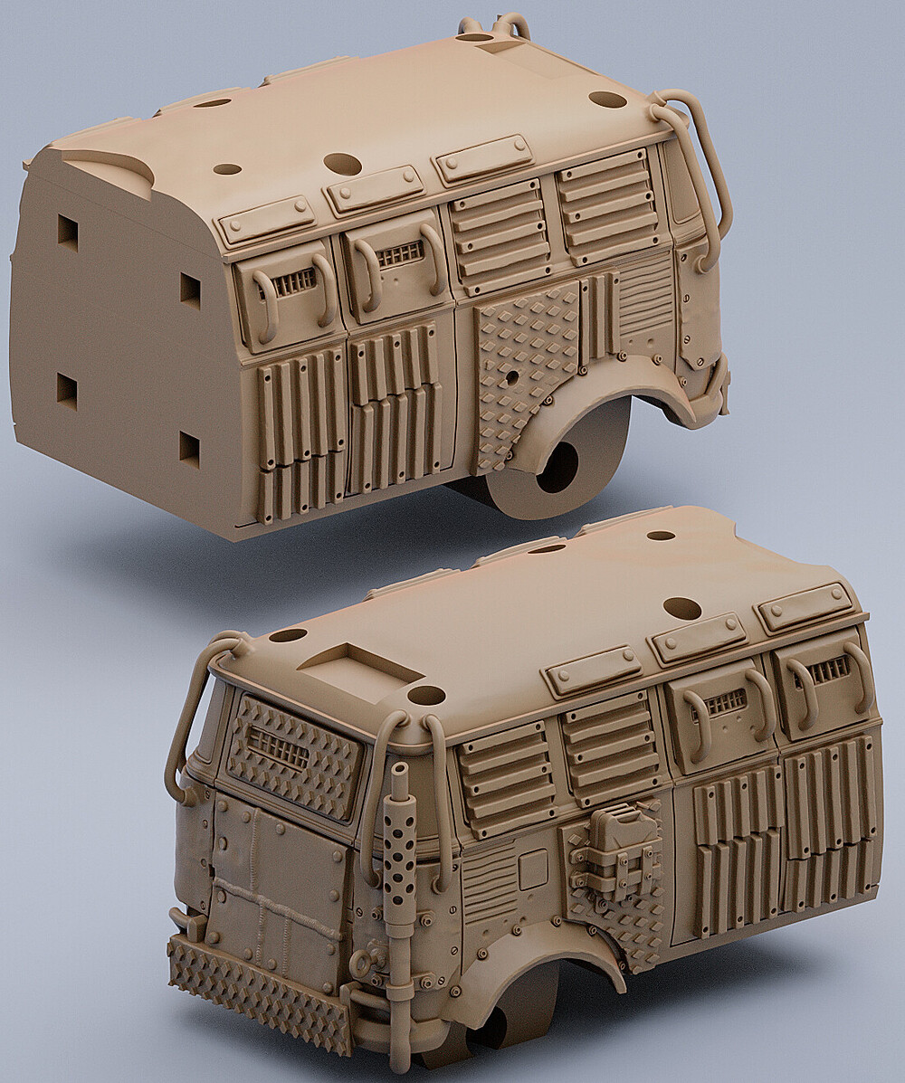 A set of 3 vehicles I did for the upcoming ‘Wasteland Warmachines’ Kickstarter. Modeled for 1:12 scale print.