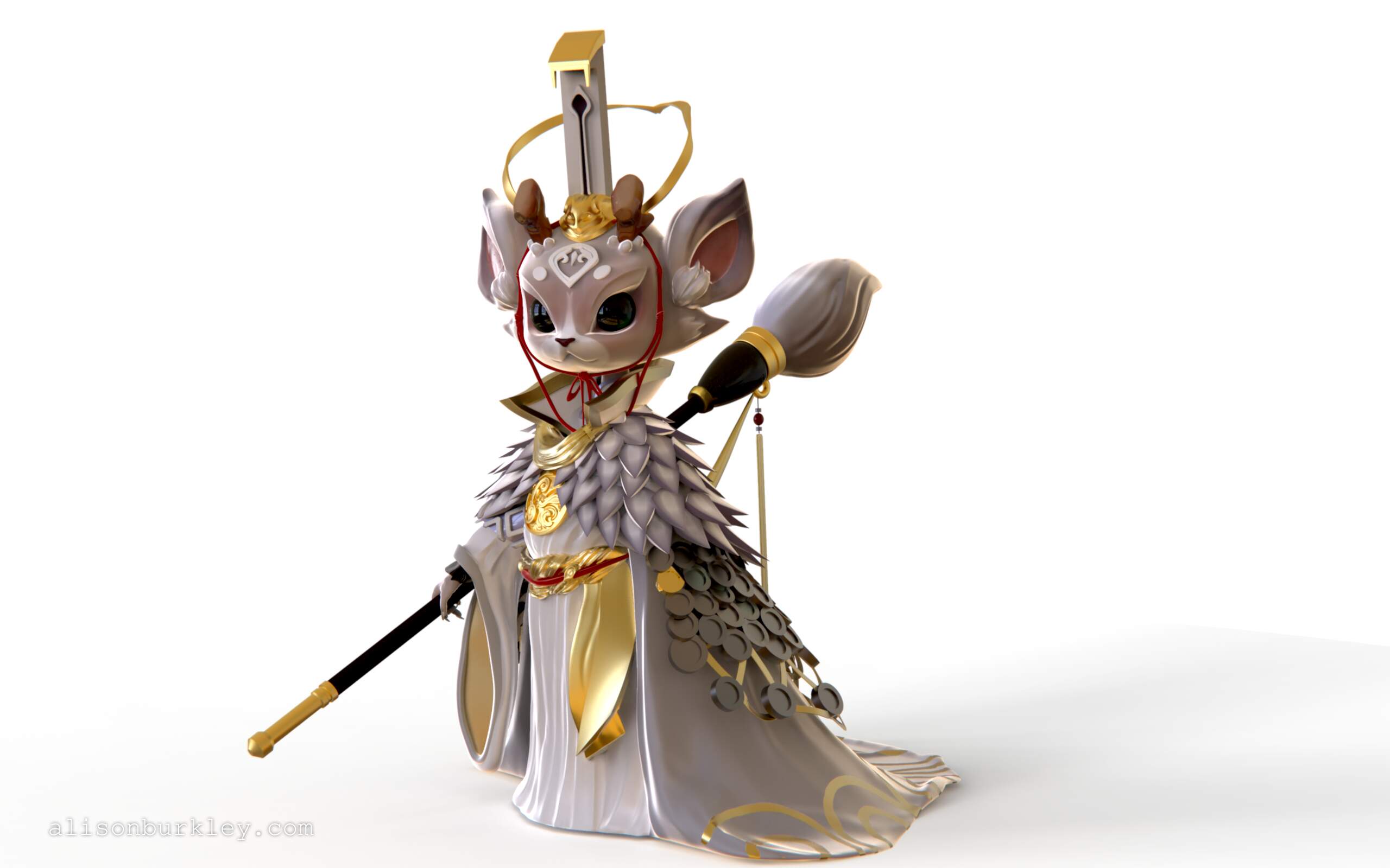 This is a ZBrush model I created for demonstration purposes during one of my earlier character modeling classes. I used the “White Deer” concept from M ZM https://www.artstation.com/artwork/rPXoG. I did end up unwrapping parts of the model but unfortunately never completely finished it. It was modeled using Maya and ZBrush, and rendered from ZBrush using Keyshot 9.