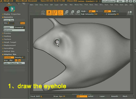 With the fish in edit mode, press the “g” key…up pops PM. Turn everything off except for Double sided, and deformation. Then create your sphere, and when it’s in position just press G again and “pick up now” You can use any tool…even zspheres to displace in PM.