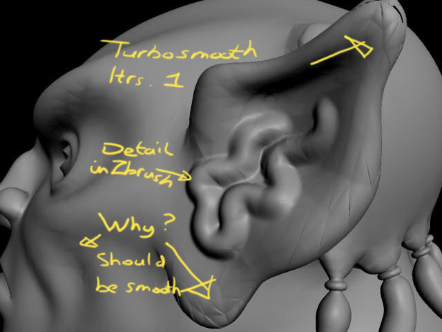 There are two images, the first with Turbosmooth Iterations 1, the 2nd with Iterations 2