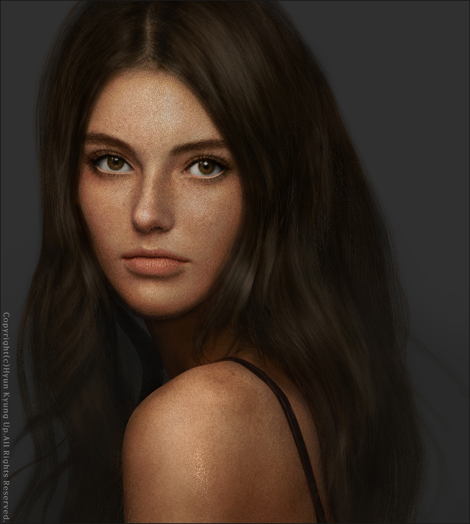 This photorealistic woman 3d portrait was created with reference to a small black and white picture.
