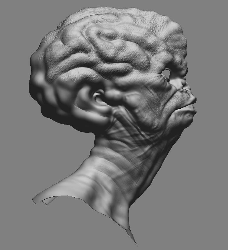 Heres a alien I whipped up in about 4 hrs starting with a human head mesh as a starting point . I still need to finish off the detail work