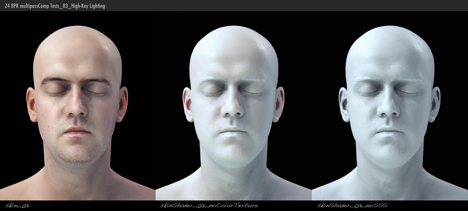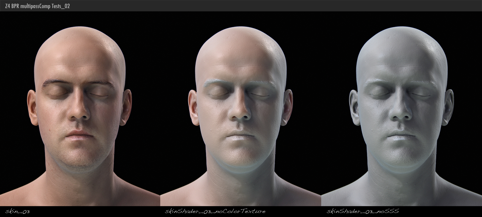 I posted the different variations (noColor/noSss), because it’s good to see, the degree that SSS affects a specific render or how much is in the color texture, etc