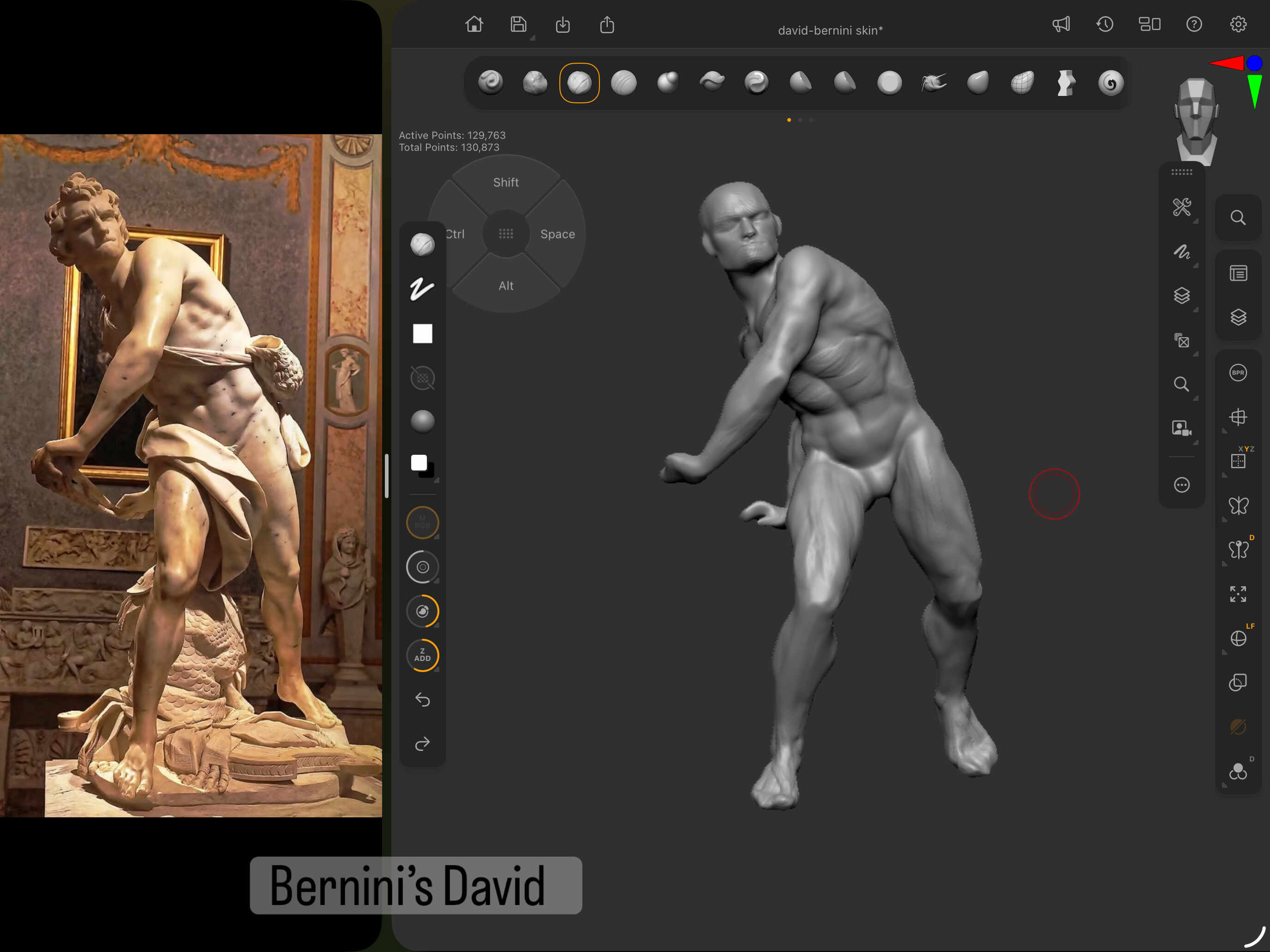 My latest sculpt on the IPad a study of Bernini’s David in Rome Italy. One of my favorite David’s including Michelangelo’s David. Still a work in progress.