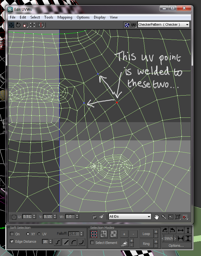 I am trying to export the lowest level of my character back to 3DSMax for some UV tweaking, only the UVs are braking. In Unwrap UVW it looks like all is fine, but each UV point is connected to a random other/s, and so the texture is not displaying correctly.