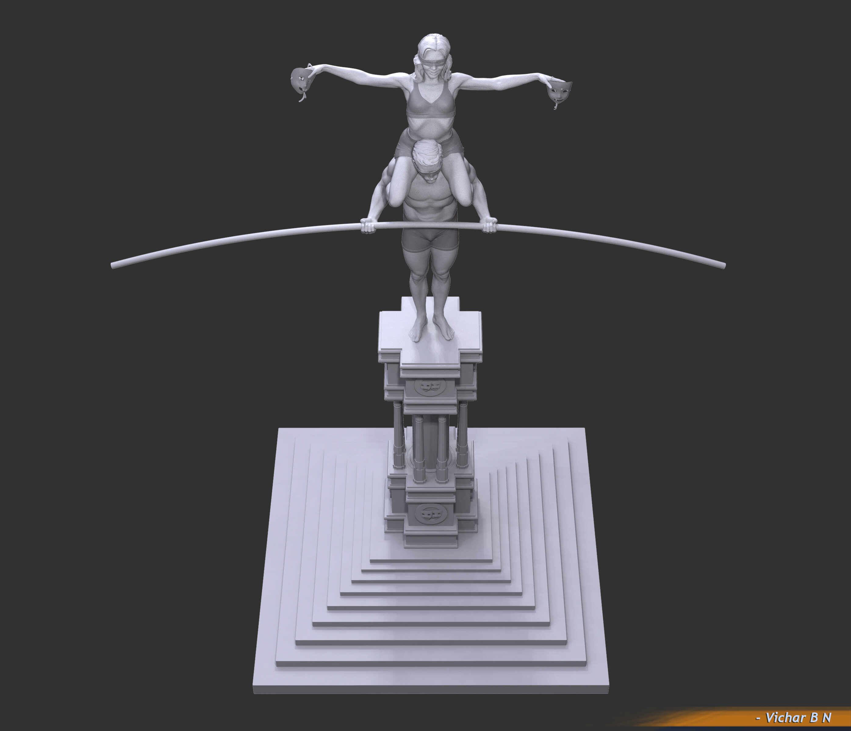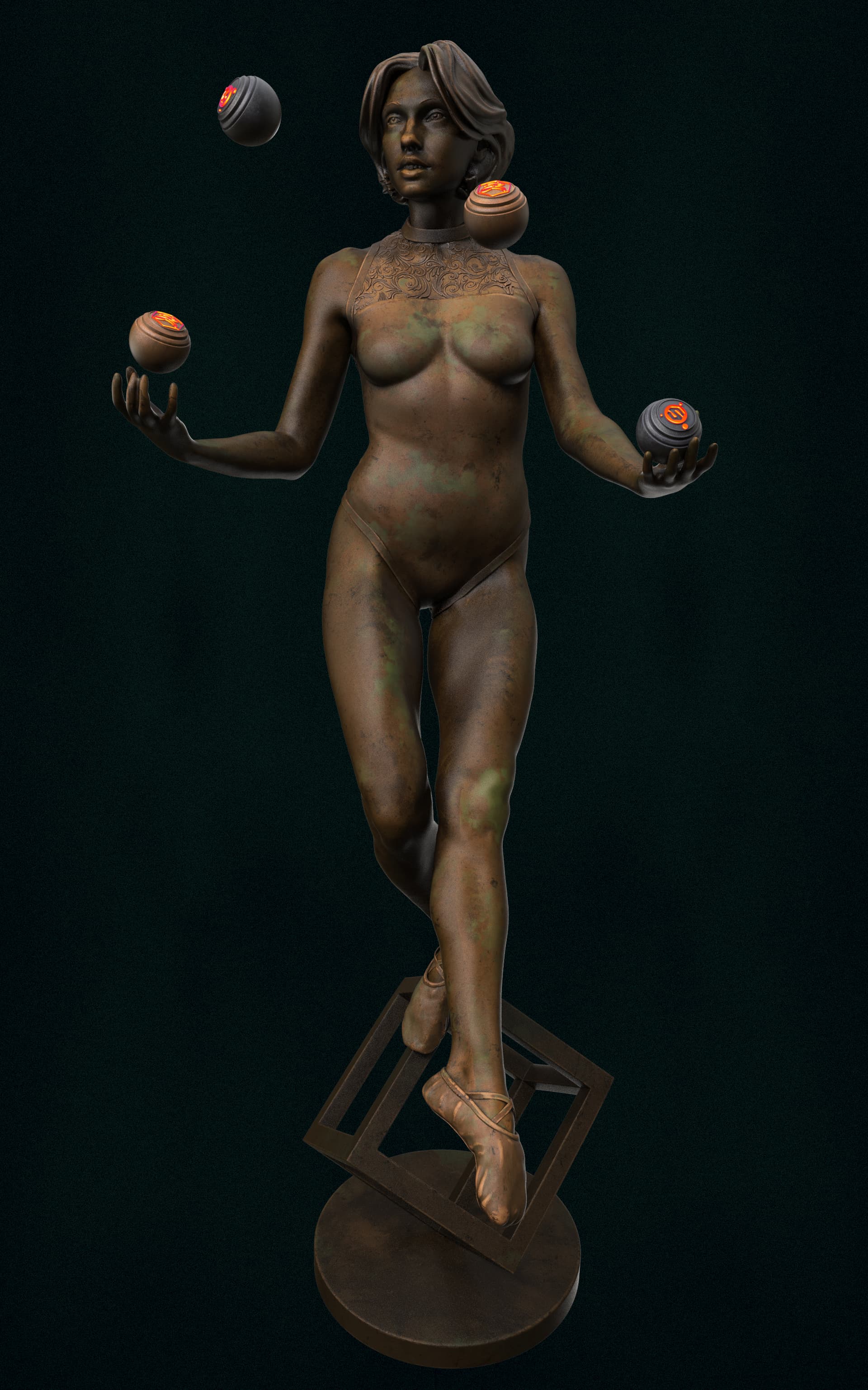 This is my latest ZBrush Beta sculpt — “Digital Juggling: The Artist Between Worlds.”