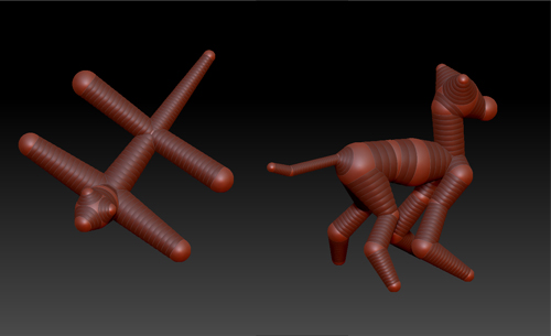 Have you tried laying it out flat like an H and then dragging down the limbs before adding secondary joint zspheres? Don’t add any zspheres to the end of the limbs after you drag the basic leg down…just lengthen them if needed by pulling out from the very first leg zsphere you laid out and add in any additional zspheres you need within these basic legs to create and manipulate the once you’ve dragged the basic leg down. (I hope that’s clear)
